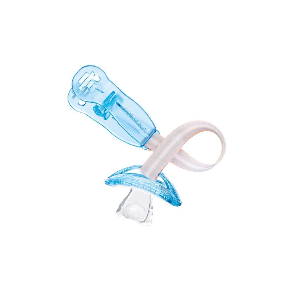 Praktický a stylový držák je dokonalou ochranou pro dudlík - a také pro kroužek na zuby. Curaprox Baby Pacifier Holder je standardní velikosti, která vyhovuje všem velikostním šňůrkám a kroužkům a je k dispozici v modré, oranžové a růžové barvě.