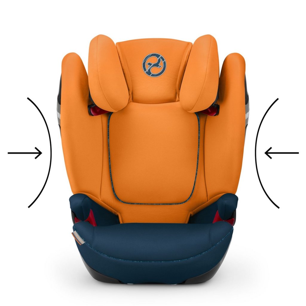 L.S.P. systém, výsuvný na stranách autosedačky. L.S.P. systém autosedačky Solution S-fix zvyšuje bezpečnost při nárazu z boku. V porovnání se stejnou autosedačkou bez vysunutého L.S.P. systému, autosedačka s vysunutou ochranou při bočním nárazu snižuje síly bočního nárazu až o 25 %.