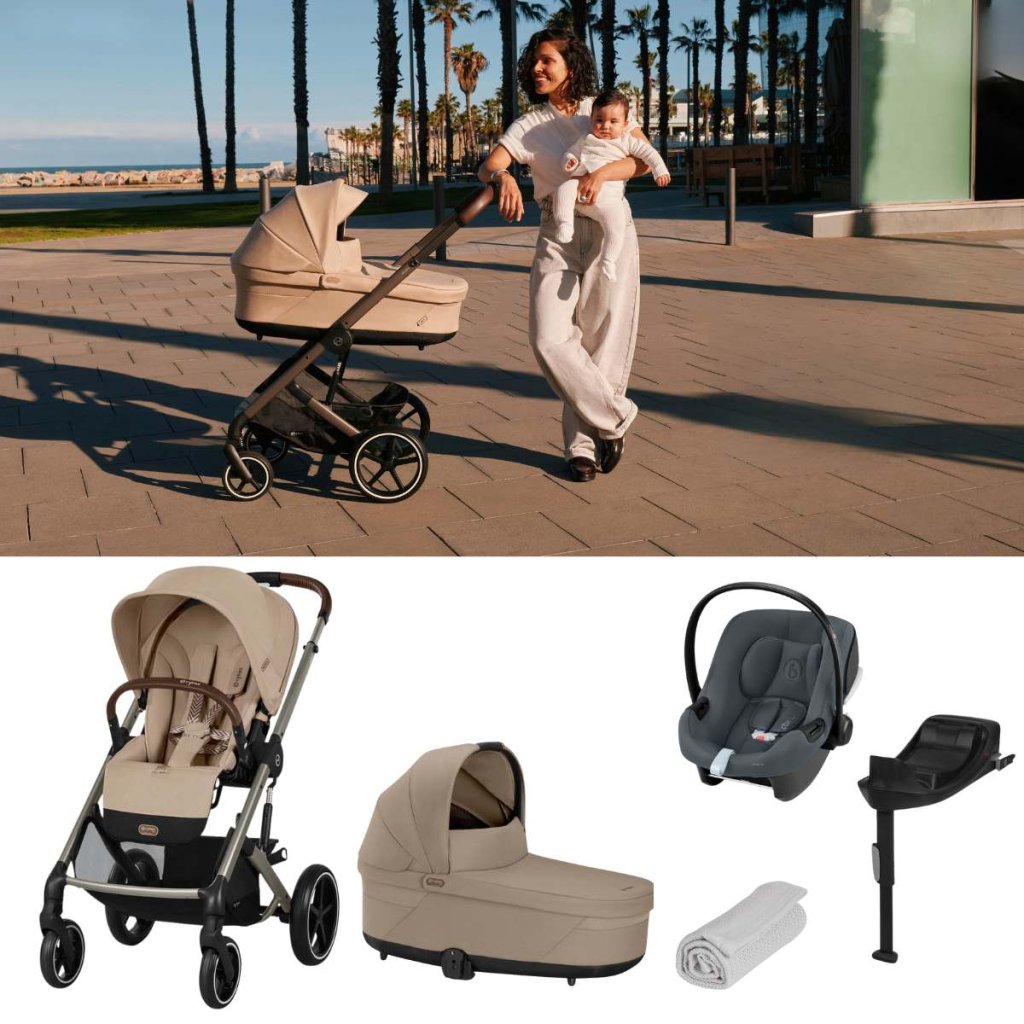 CYBEX Výhodný set Balios Almod Beige + Lůžko + Autosedačka se základnou Grey