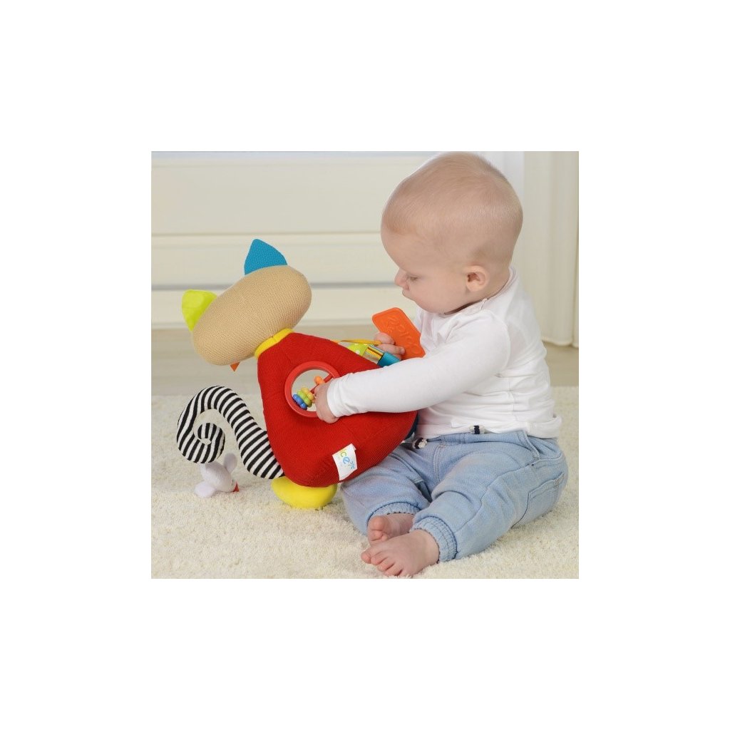Vítejte v krásném světě hraček Dolce! Nechte u svého dítěte rozvíjet smyslové dovednosti s širokou škálou vysoce kvalitních texturovaných tkanin. Vaše dítě bude milovat pozorování krásných barev a bude prozkoumávat svět s měkkými materiály. Vaše dítě se naučí chápat příčiny a následky prostřednictvím mnoha zajímavých aktivit v hračkách Dolce. Vytvářejte tak zábavu, učení a hraní rolí s Vaším oblíbeným Dolce kamarádem. Nechť krásné, zajímavé a na činnosti bohaté hračky vzdělávají děti prostřednictvím hraní. To je nejvyšším cílem francouzské značky Dolce. Dolce = rozvoj, pozorování, učení, tvoření, vzdělávání! Siamská kočka je vyrobena z jemné pleteniny, manšestru, bavlny a dalších textilií pro správný rozvoj hmatu. Sluchové vnímání podpoří šustění oušek, chrastění tlapky či pískání myšky umístěné na ocásku. Ve středu těla kočičky se nachází malé počítadlo s barevnými kytičkami pro rozvoj jemné motoriky, ale také pro malé počtáře. Kontrastní barvy pro rozvoj zraku a kousátko pro úlevu bolavým dásním jsou samozřejmostí. Pro zvídavá miminka nechybí ani zrcátko na levé tlapce.
