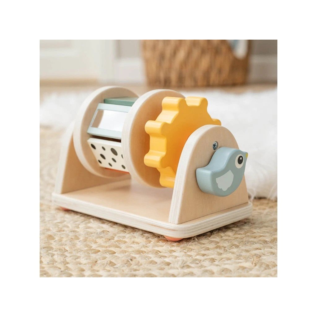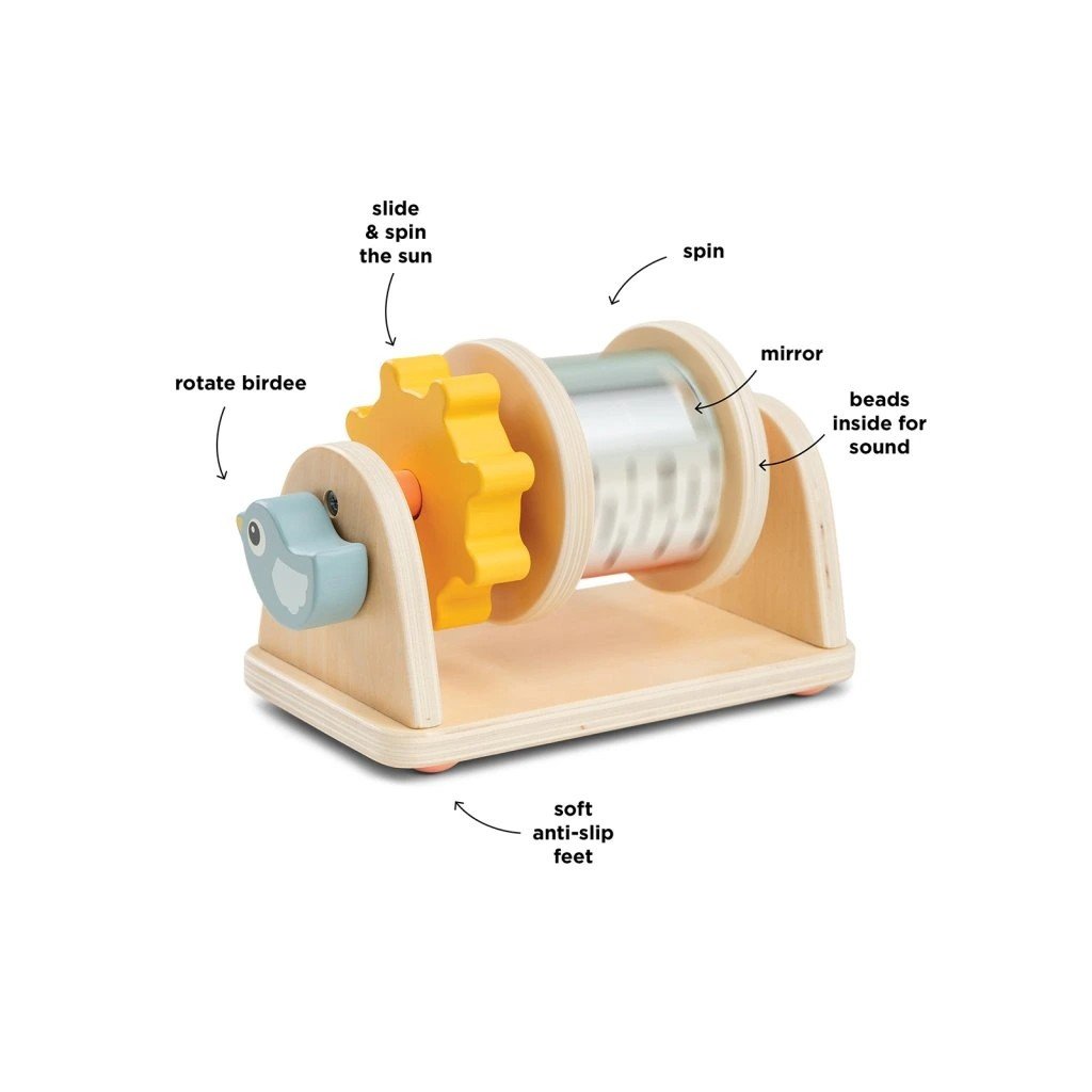 Hračka Birdee s různým materiálem pro hmatovou stimulaci. Doporučeno od 3 měsíců – ideální pro procvičování času na bříšku a pro chvíle, kdy vaše dítě může sedět. Povzbuďte své dítě, aby zvedlo paže, aby se roztočilo a posouvalo kolečka. Hravé tvary pro malé prstíky k prozkoumání. Zábavné barvy a zrcátko pro vizuální stimulaci. Zvuk korálků zvyšuje zvědavost vašeho dítěte. Praktické protiskluzové nožičky zabraňují převrácení odstředivky. Vyrobeno ze zodpovědně získaného dřeva a natřeno vodou ředitelnou barvou, která neobsahuje škodlivé látky, takže je pro vaše dítě bezpečné si s ním hrát.
