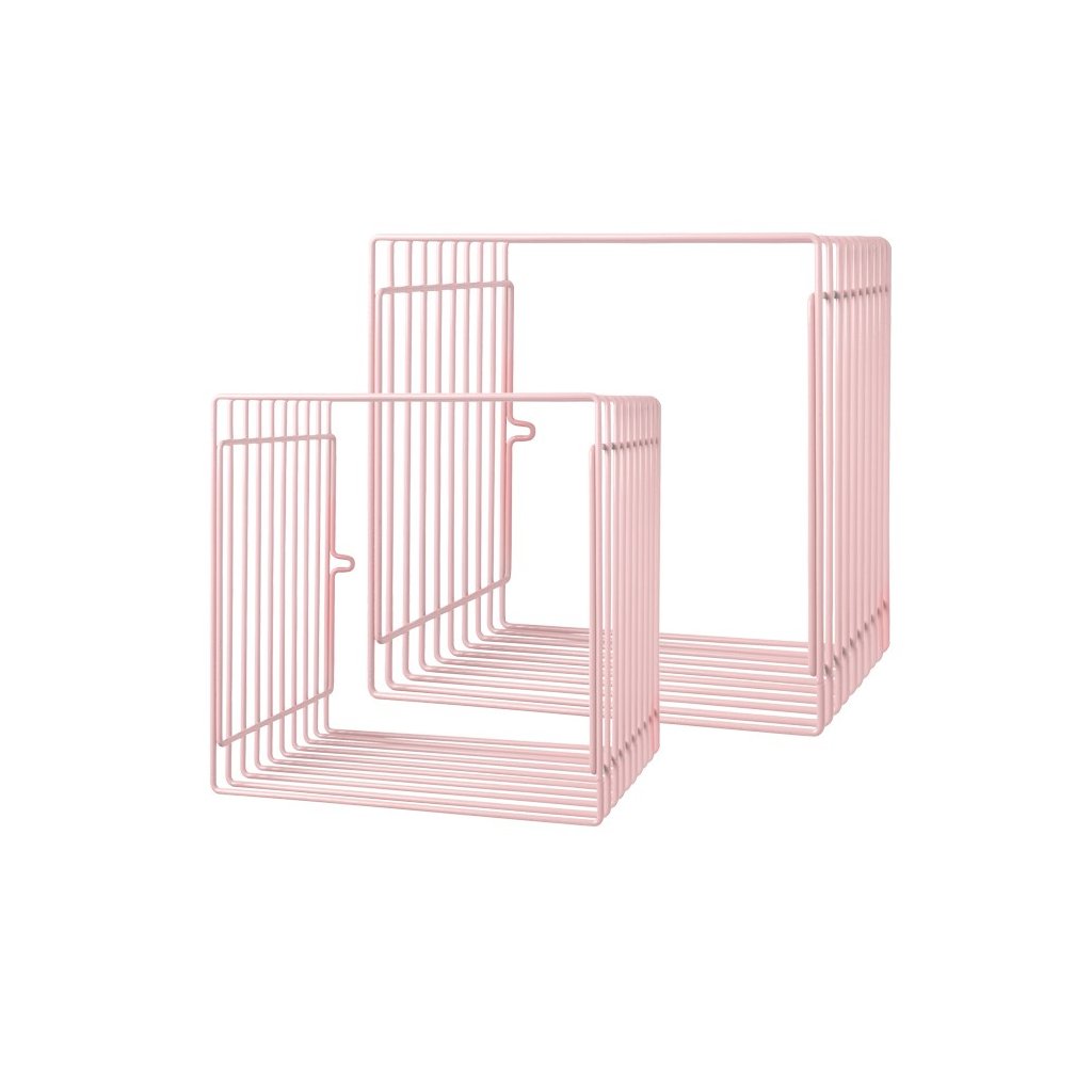 Trendy verze klasické čtvercové police pro moderní dětský pokoj. Můžete do ní ukládat knihy, hračky, obrázky, atd. Set se skládá ze dvou krychlových regálů v různé velikosti, které se dají zavěsit na zeď nebo nechat volně stát na zemi. Pollice mají světle růžovou barvu.