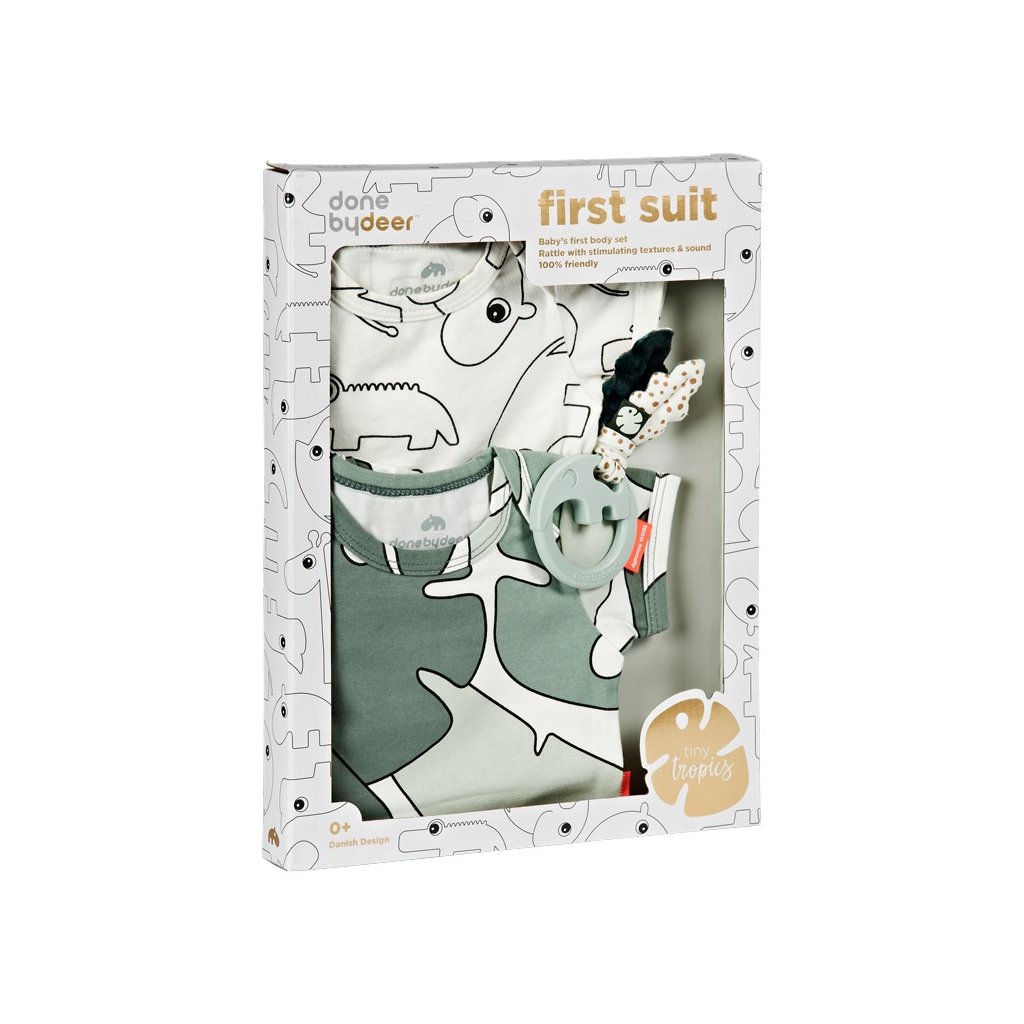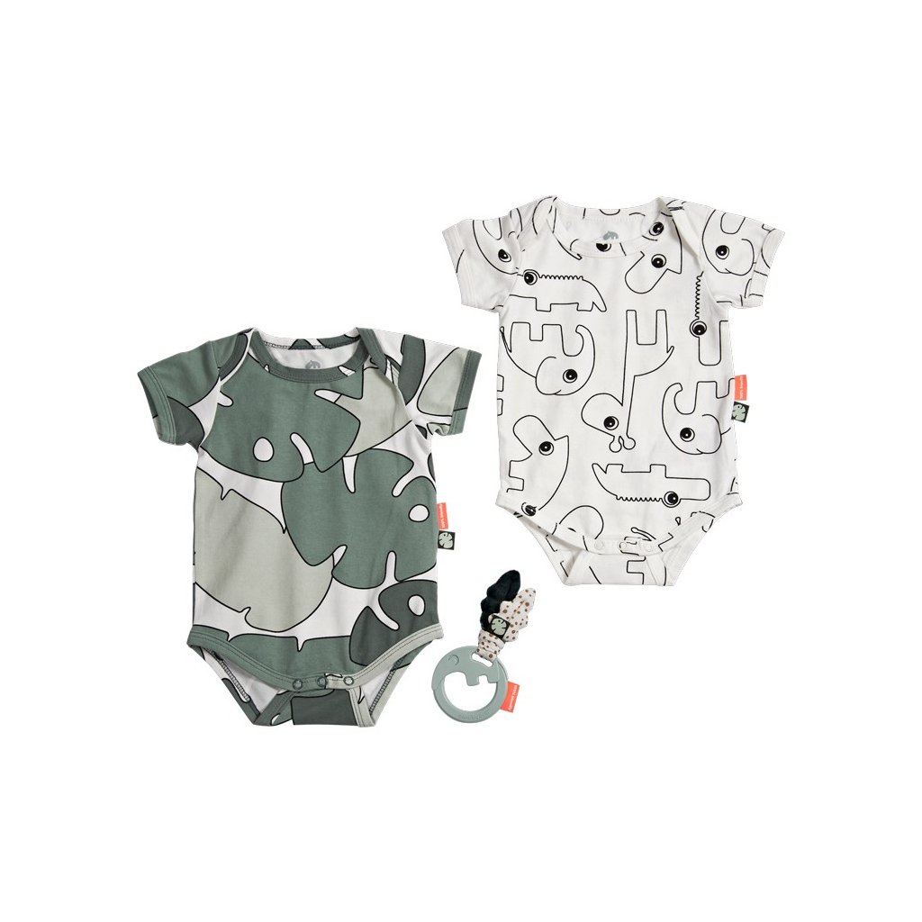 DONE BY DEER Dárkový set dětské body 2 ks + chrastítko Tiny Tropics
