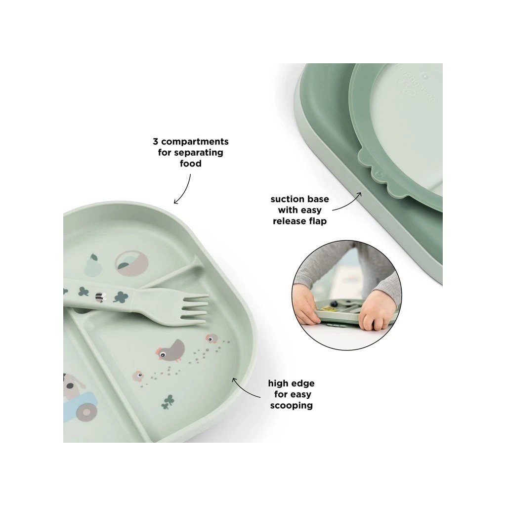DONE BY DEER Dětská jídelní souprava Tiny Farm zelená