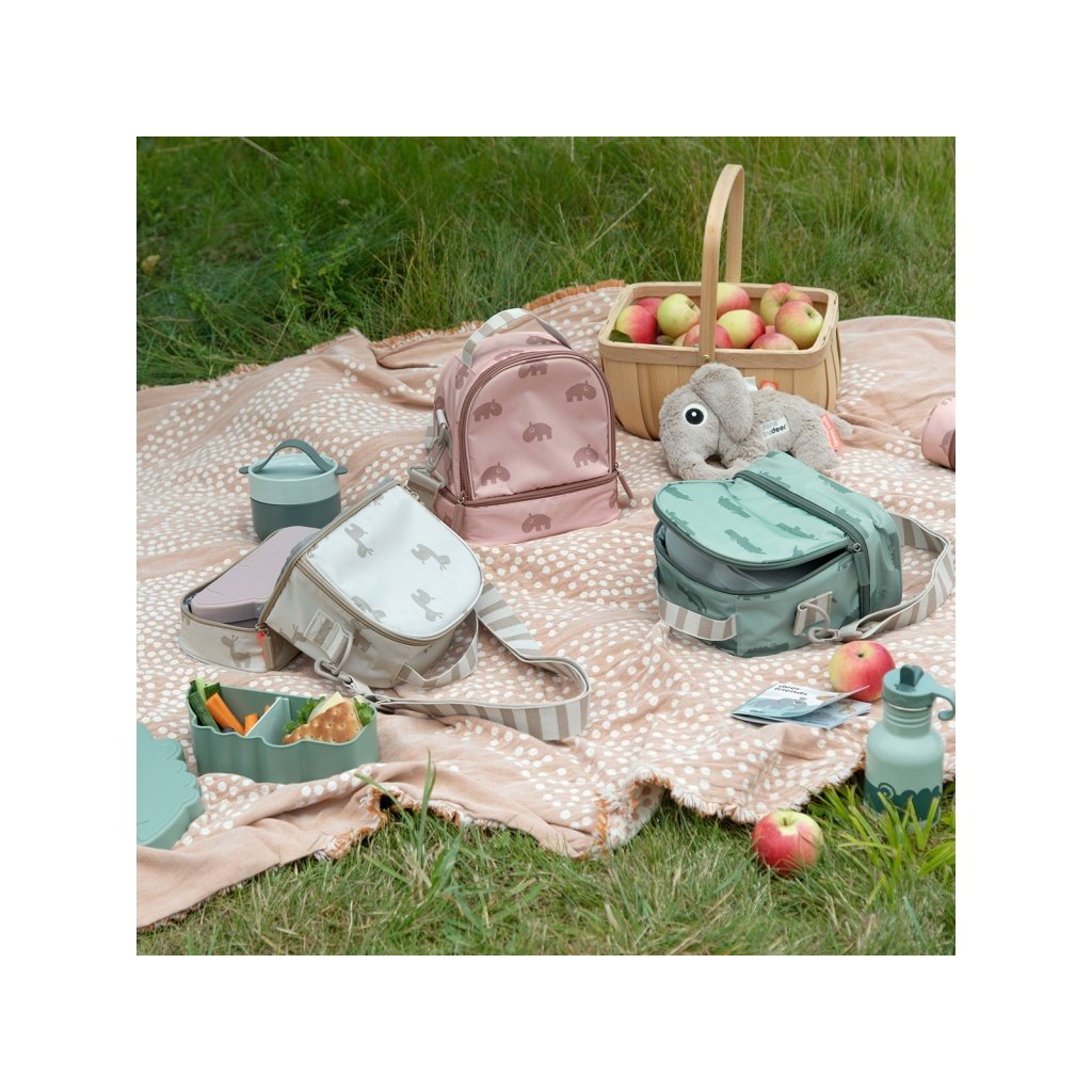Dětská izolovaná obědová taška Croco je ideální pro přenášení jídla a pití na cesty a udržování teplé nebo studené teploty během cesty. Je vyrobena ze 100% polyesteru s izolační látkou uvnitř. Všechny boxíky na oběd a lahve Done by Deer se vejdou do tašky. Taška má dvě přihrádky a nastavitelný ramenní popruh, který Vašemu dítěti dokonale padne. Taška se dítěti snadno otevírá pomocí dvou zipů. Jmenovka uvnitř. Ucho a ramenní popruh mají podpisové pruhy Done by Deer. Tkanina odolná vůči povětrnostním vlivům se snadno čistí vlhkým hadříkem.