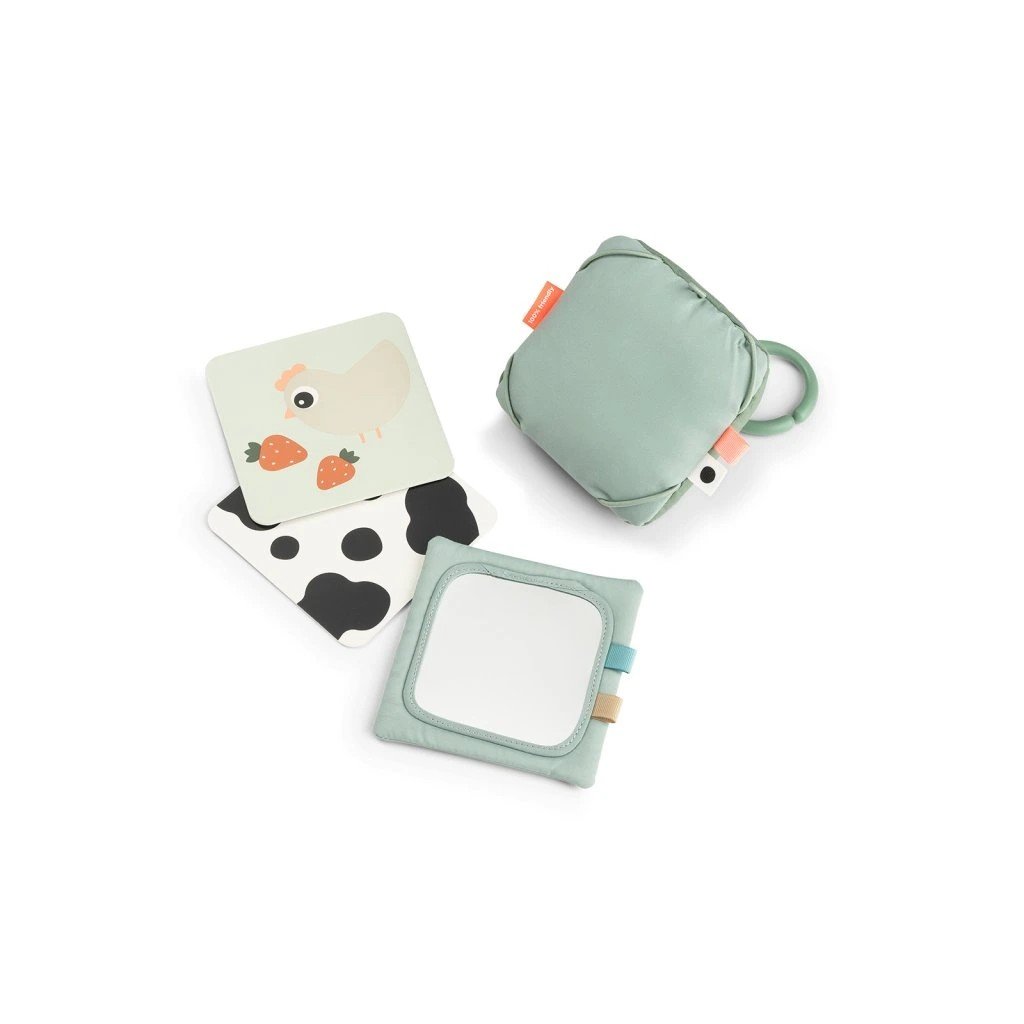 DONE BY DEER Dětské kontrastní karty s držákem Tiny farm zelené