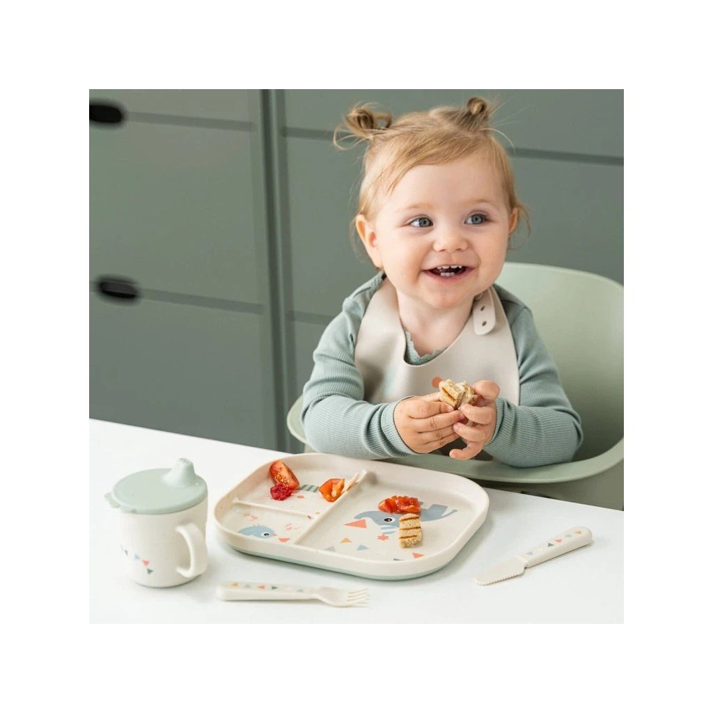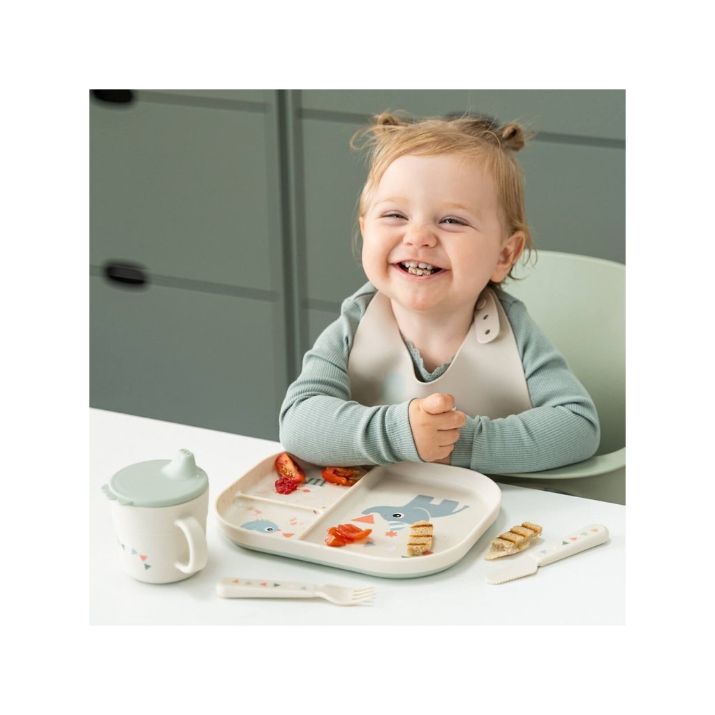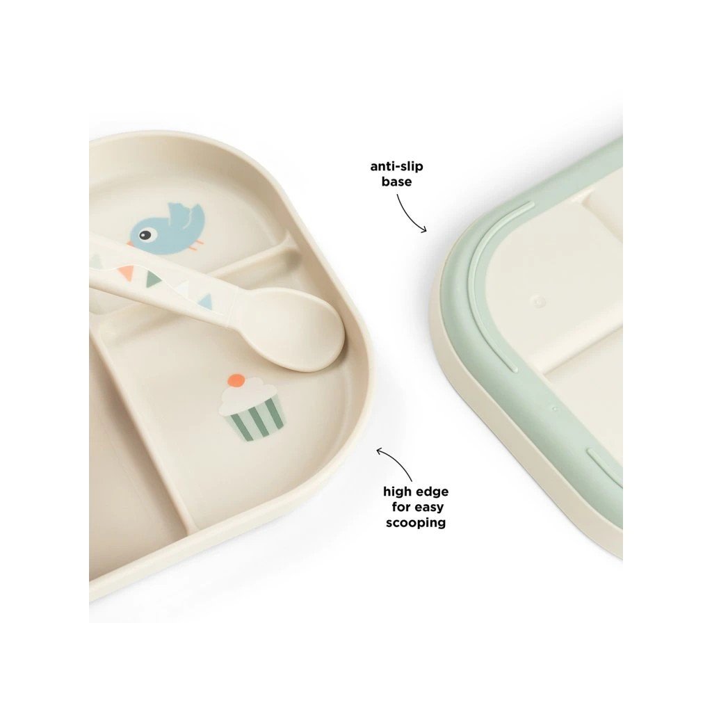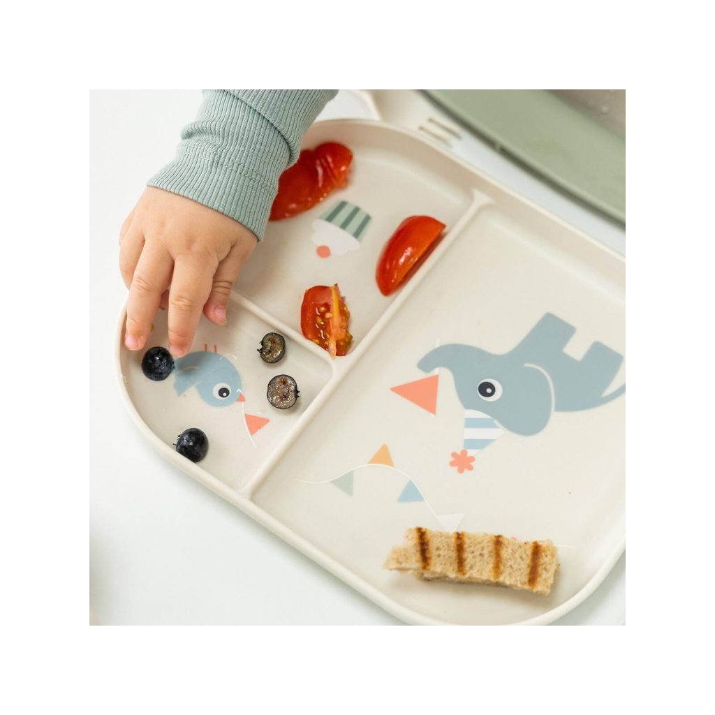 Nechte svého malého jedlíka vychutnat si jídlo z děleného talíře Foodie. Rozdělte večeři svého dítěte a nechte každou přihrádku udržet jídlo na svém místě. Vysoké okraje talíře pomohou vašemu dítěti nabrat jídlo, zatímco praktická protiskluzová základna zajistí, že talíř zůstane na svém místě. Talíř je určen pro každodenní život s dětmi a je vhodný do myčky a mikrovlnné trouby.