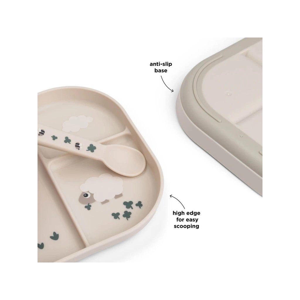 Nechte svého malého jedlíka vychutnat si jídlo z děleného talíře Foodie. Rozdělte večeři svého dítěte a nechte každou přihrádku udržet jídlo na svém místě. Vysoké okraje talíře pomohou vašemu dítěti nabrat jídlo, zatímco praktická protiskluzová základna zajistí, že talíř zůstane na svém místě. Talíř je určen pro každodenní život s dětmi a je vhodný do myčky a mikrovlnné trouby.