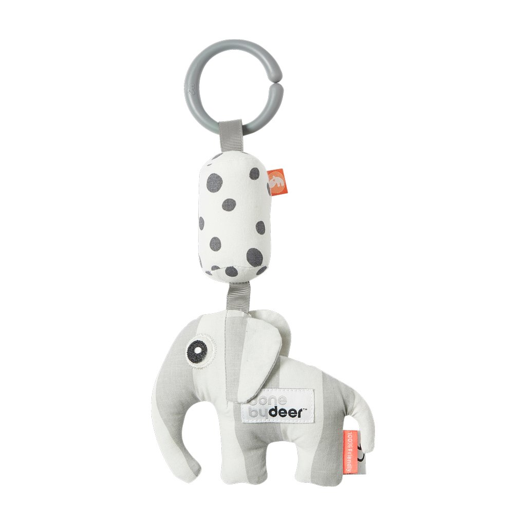 Vezměte sloníka Elpheeho s sebou kamkoliv půjdete. Hračka při pohybu chrastí a pomocí kroužku ji můžete zavěsit na kočárek nebo autosedačku, aby ji mělo miminko pořád ve své blízkosti. Vhodné od narození.