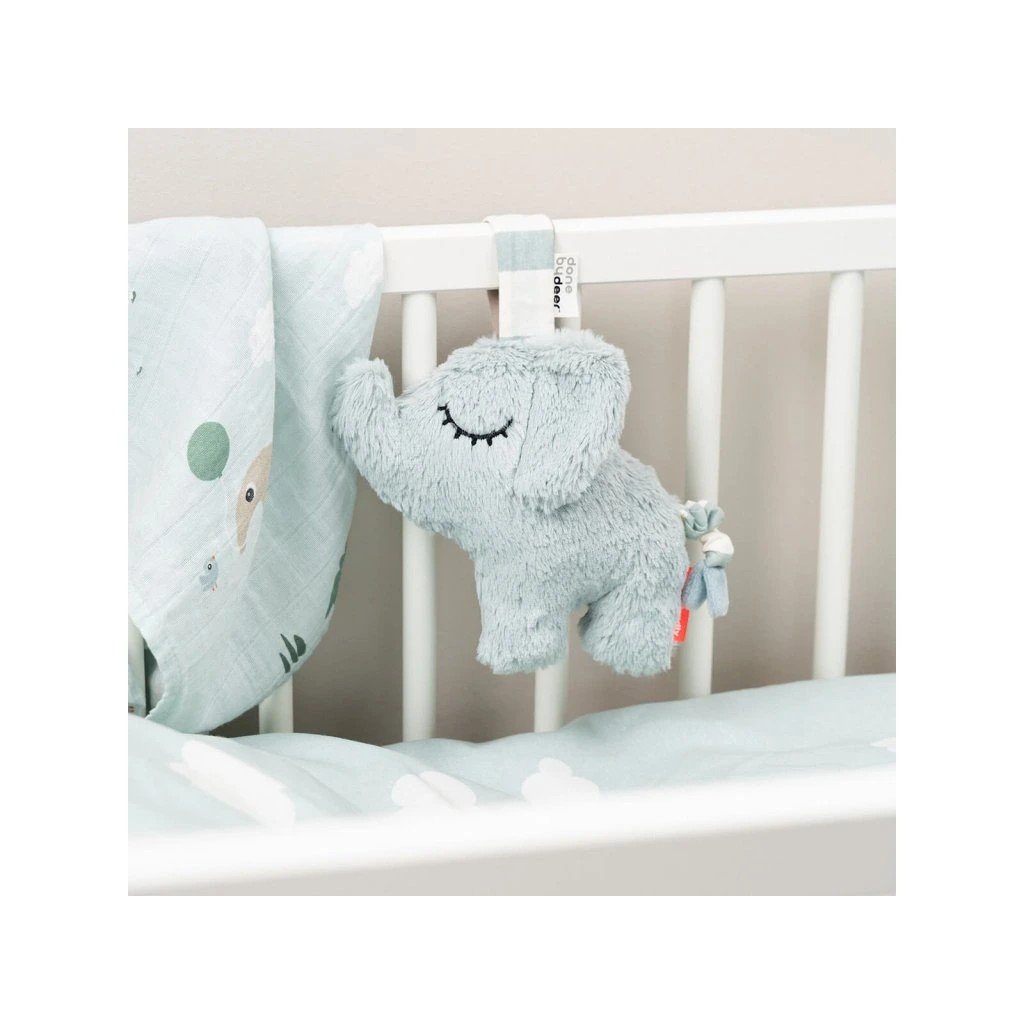 Měkká hudební hračka Elphee zabaví vaše dítě při hraní a zajistí, aby se vaše dítě cítilo bezpečně a klidně, když je čas si zdřímnout. Nechte veselého sloníka Elphee ukolébat vaše dítě ke spánku nebo mu navodit příjemnou náladu za zvuku „Over the Rainbow“. Měkká hudební hračka se snadno připevní kamkoli pomocí praktického zapínání na suchý zip.