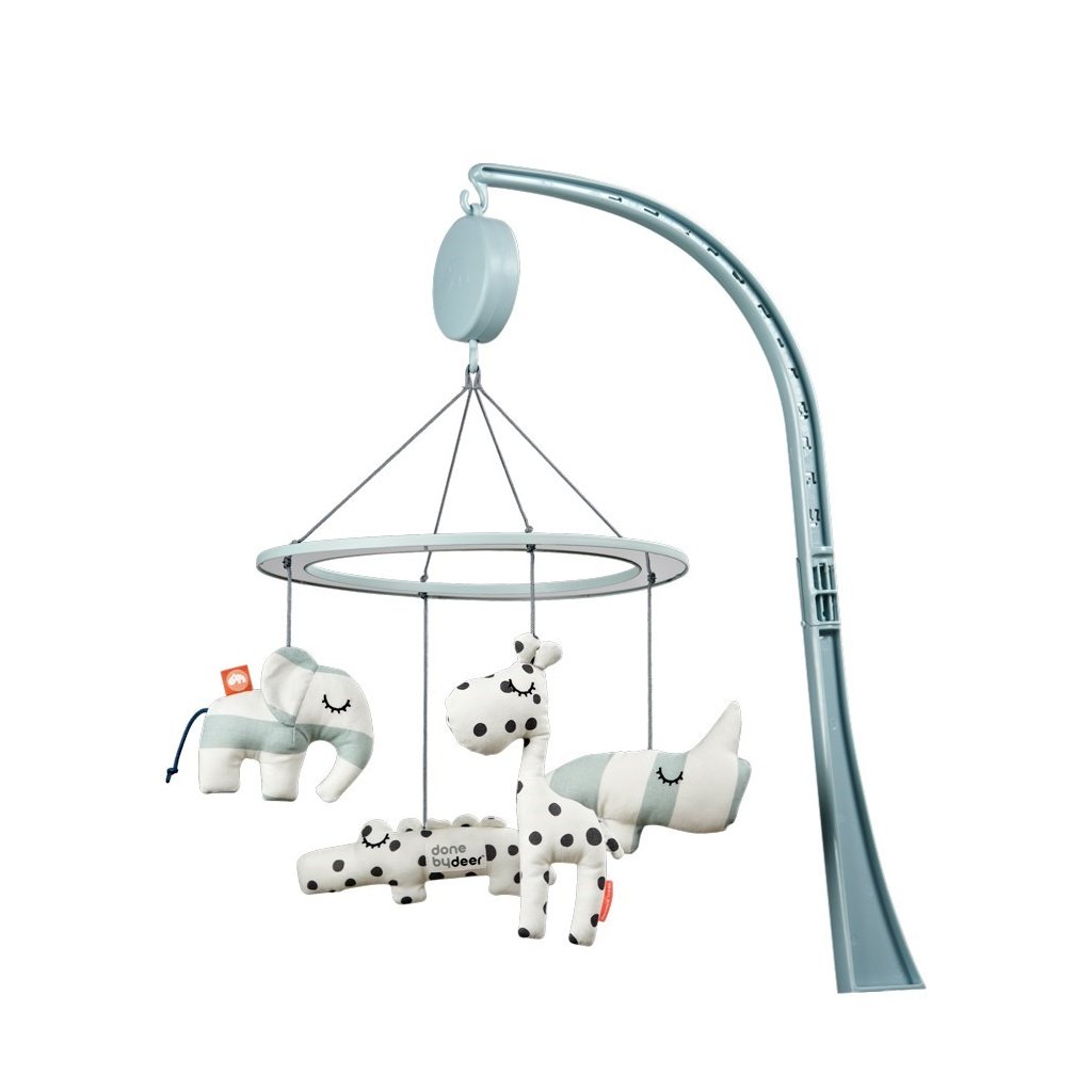 Nechte své miminko utěšit se s jeleními kamarády, kteří se nad ním budou vznášet společně se zrcadlem, které upoutá jeho pozornost. Může se jich dotýkat, hrát si s nimi, pozorovat je, zatímco jej přebalujete, nebo jde právě spinkat. Vhodné nad postýlku, do kočárku nebo na cesty. Díky přiloženému ramenu lze hudební kolotoč snadno připevnit k postýlce. Objevte okouzlující svět Done by Deer a vytvořte si Happy Home styl. Všechny produkty Done by Deer se vyznačují inovativním designem, originalitou, jsou vyráběny z těch nejkvalitnějších materiálů a 100% nezávadné.