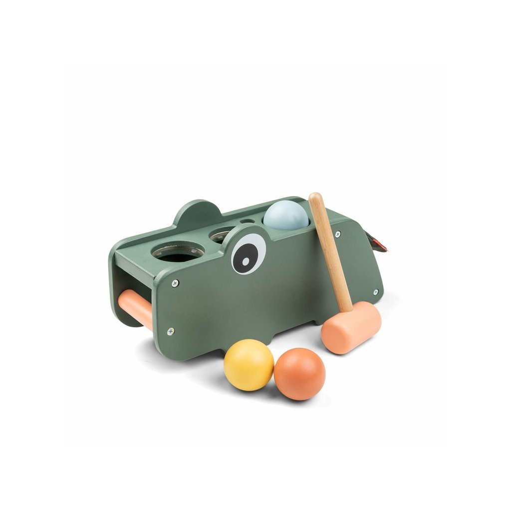 Dřevěná kladívková hračka Croco je klasika pro batole. Jeho funkce stimulují koordinaci ruka-oko a smysl pro sluch, když dítě udeří kladívkem do míčků. Míčky jsou také ideální pro hry typu dej a ber. Otevírání klapky je vyrobeno z měkké odolné tkaniny s praskavým zvukem. Vaše dítě může uchopit a držet rukojeť Croca ze dvou stran; vzadu, abyste ji mohli nosit, a vepředu, abyste prozkoumali míčky vyklopené na podlahu - jděte je znovu chytit. Hračka ve tvaru krokodýla s kladívkem je navržena v zelené barvě s barevnými prvky. Dřevěná hračka je vyrobena ze zodpovědně získaného dřeva a natřena barvami na vodní bázi, které neobsahují škodlivé látky, takže je pro Vaše dítě bezpečné.
