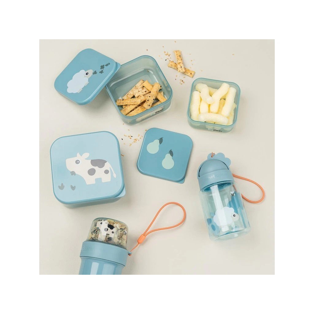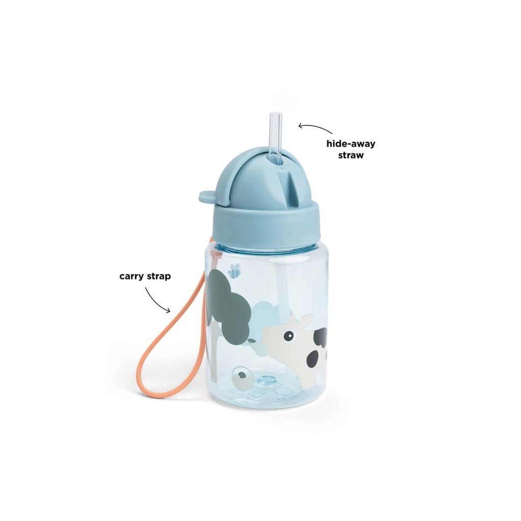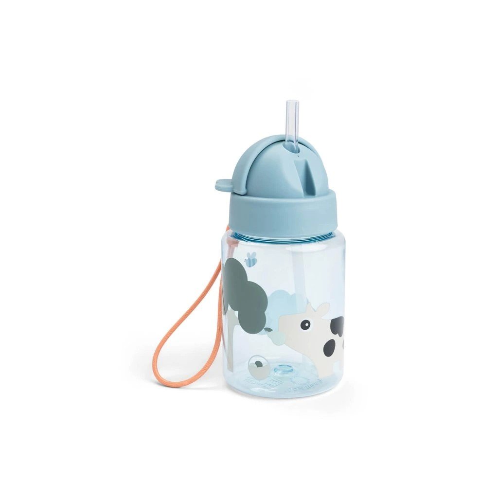 DONE BY DEER Láhev s brčkem Tiny farm modrá