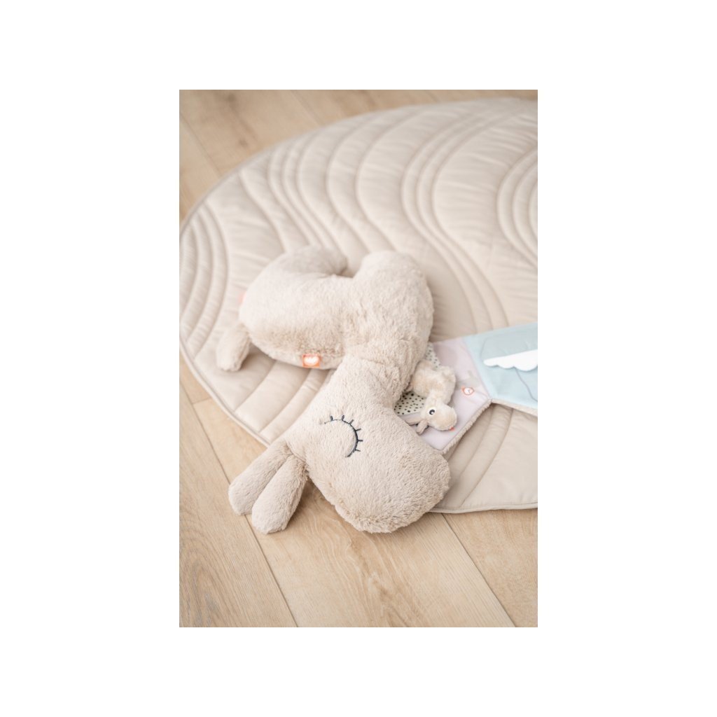 S touto dětskou měkkou knížkou jste pozváni do domova Lalee, snící lamy. Měkká knížka zve vaše děťátko, aby využilo svou fantazii a vymýšlelo příběhy. Hrajte si s drobnou měkkou postavičkou a přesuňte Lalee ze stránky na stránku a hrajte známé každodenní rutiny. Otáčení stránek trénuje jemné motorické dovednosti vašeho dítěte. Užijte si vyprávění příběhu o Lalee, abyste zlepšili jazykové dovednosti svých dětí. Nechte své dítě ukazovat na stránky a pracovat s nimi, abyste zlepšili jeho koordinaci ruka-oko.