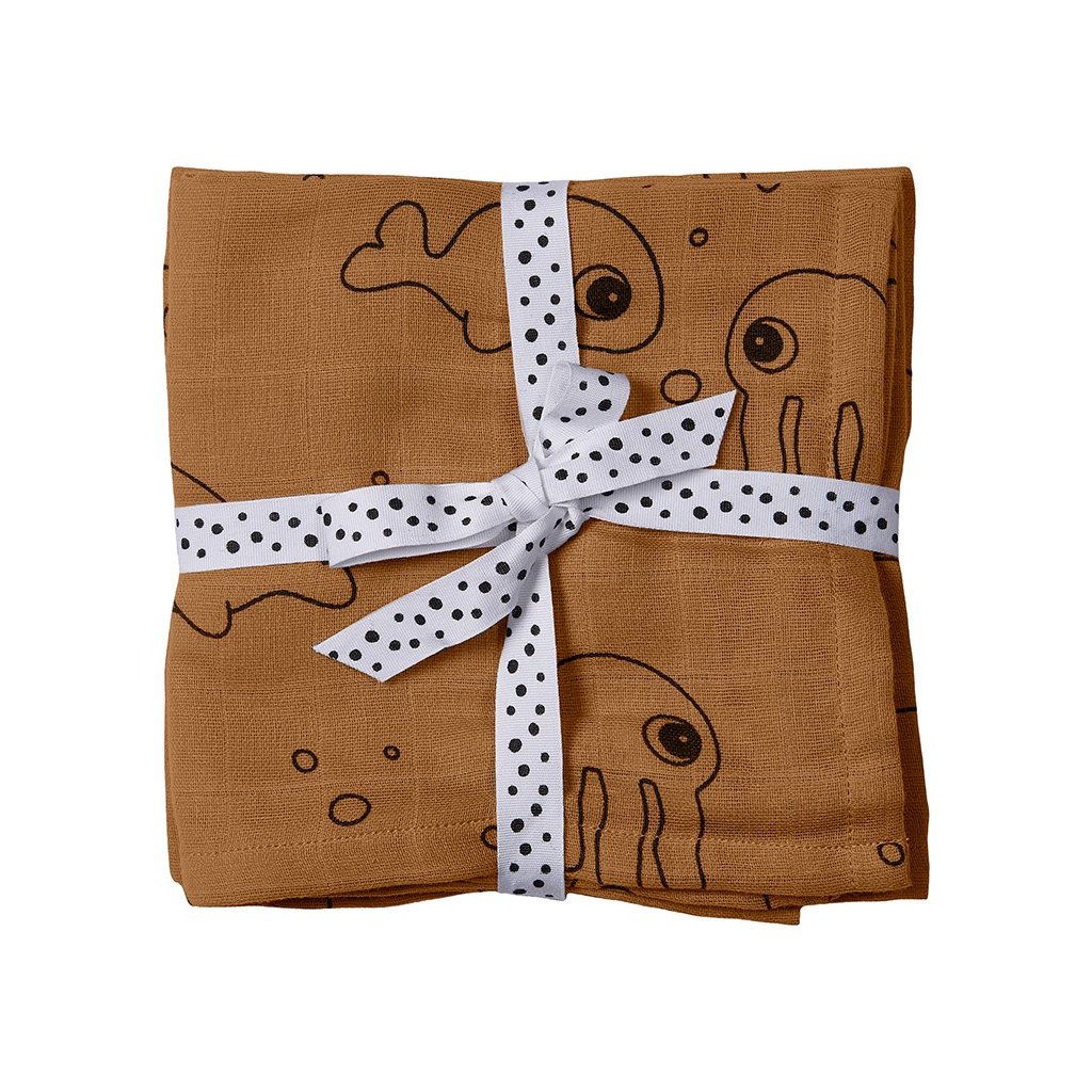DONE BY DEER Mušelínové zavinovací plenky Sea Friends 2 ks hořčicové