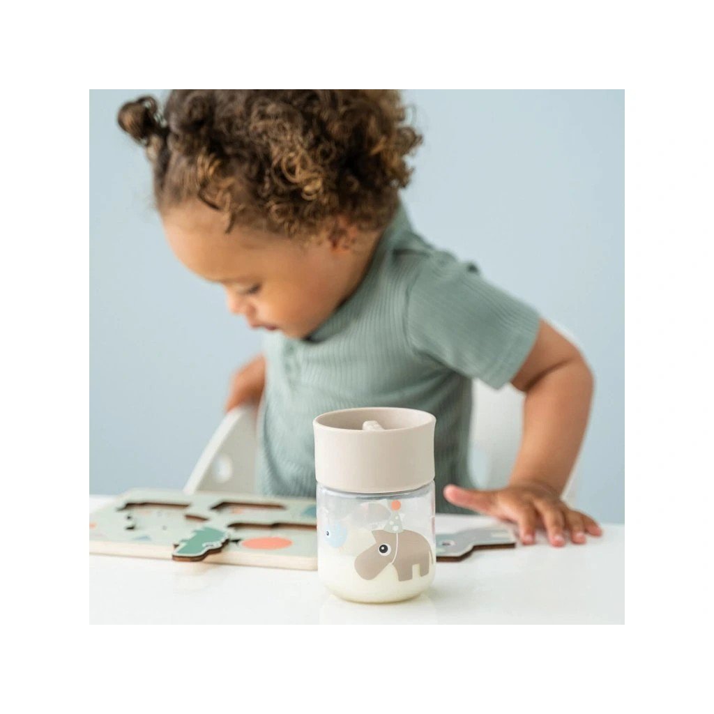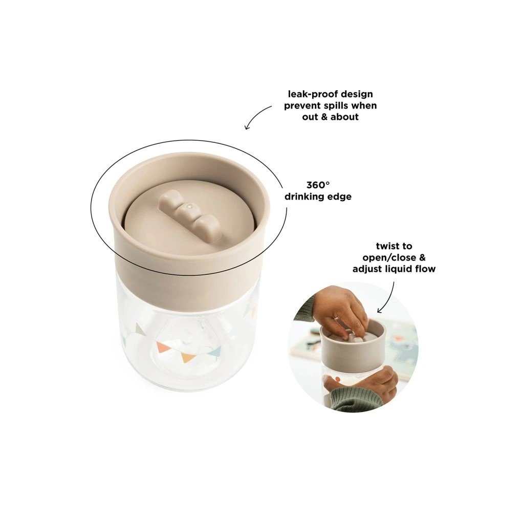 360° netekoucí učící hrneček dovoluje dětem nápoj z hrnečku jen usrkávat, ale hlavně učit se pít díky okraji ze kterého lze pít z jakékoliv strany. Otočením víčka regulujte průtok tekutiny. Hrneček je lehký a má perfektní velikost pro malé dětské ručičky.