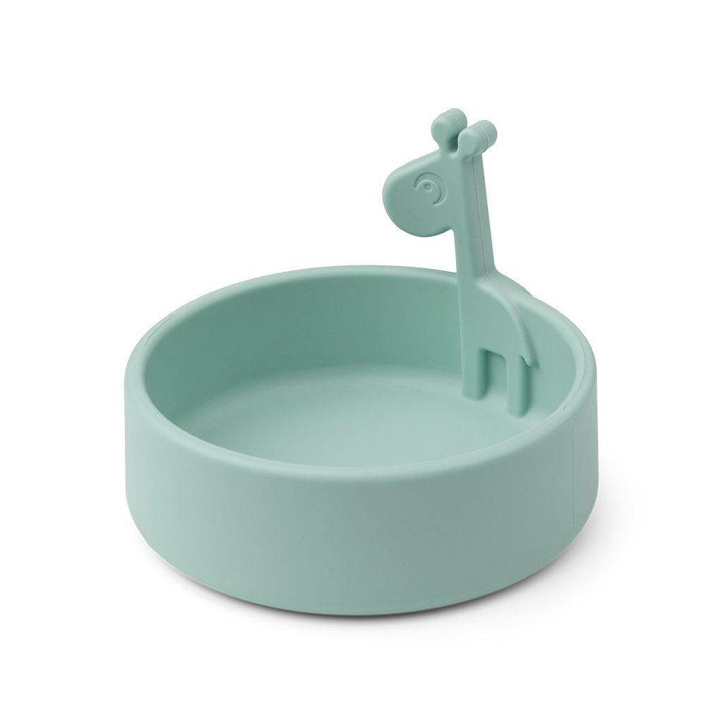 Peekaboo, je čas jíst! Raffi vykukuje z roztomilé a praktické silikonové mističky připravené udělat z jídla další zábavnou denní dobu. Díky vyšším okrajům a zaobleným vnitřním hranám je miska ideální pro snadné nabírání, když se dítě učí jíst samostatně. Rozkošná mistička je vyrobena z potravinářského silikonu, takže je nerozbitná a vhodná pro použití v mikrovlnné troubě, troubě, mrazničce a myčce nádobí a má protiskluzové vlastnosti. Odolná silikonová mísa je ideální pro ohřátí dětské stravy. Praktická mísa je v jemném odstínu odpovídající kolekci nádobí Peekaboo a je dodávána v roztomile zdobené dárkové krabičce.