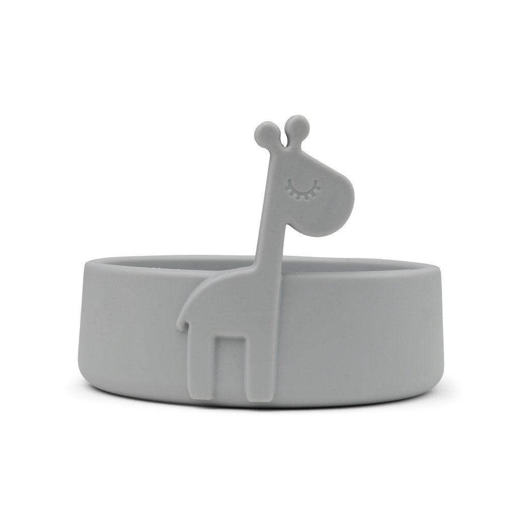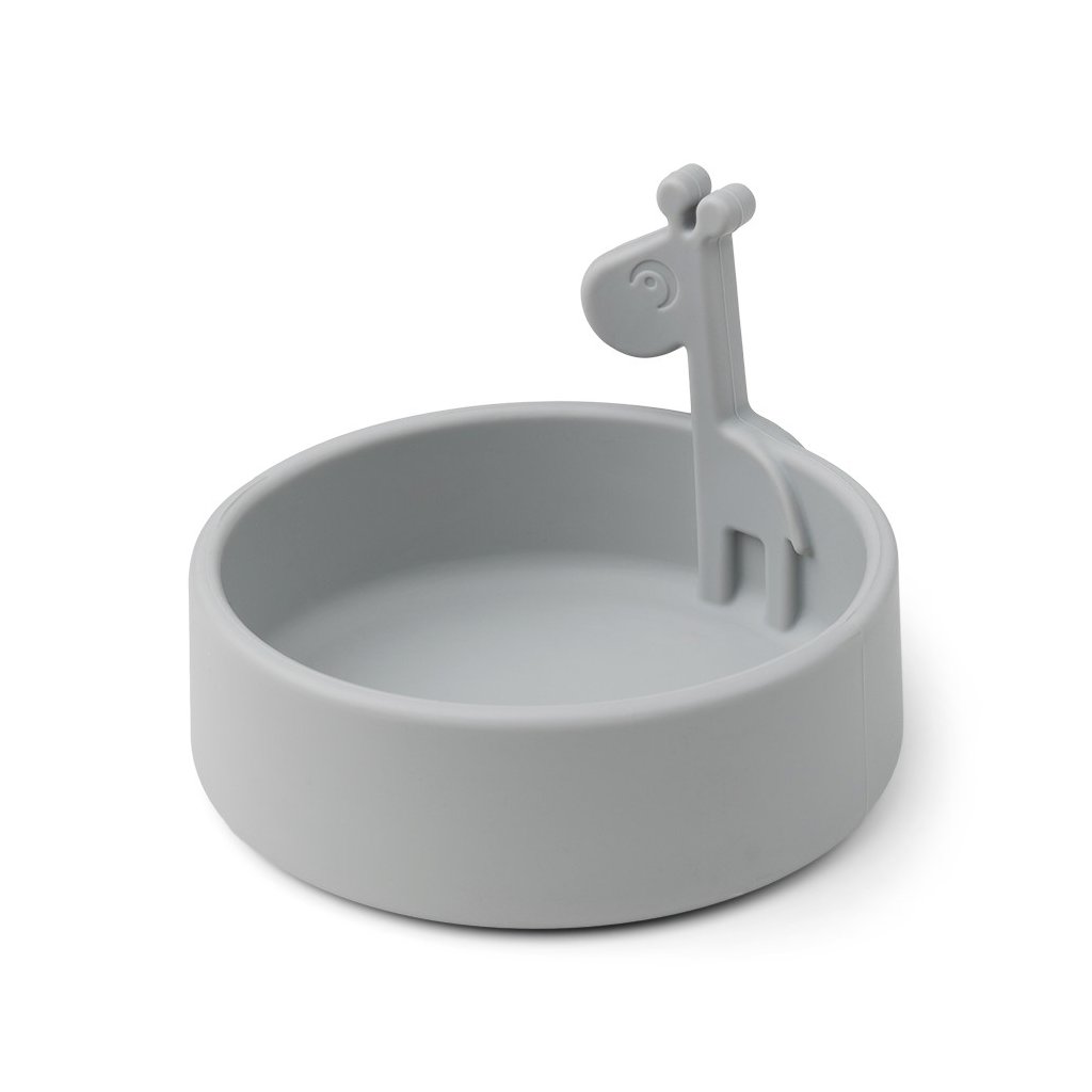 Peekaboo, je čas jíst! Raffi vykukuje z roztomilé a praktické silikonové mističky připravené udělat z jídla další zábavnou denní dobu. Díky vyšším okrajům a zaobleným vnitřním hranám je miska ideální pro snadné nabírání, když se dítě učí jíst samostatně. Rozkošná mistička je vyrobena z potravinářského silikonu, takže je nerozbitná a vhodná pro použití v mikrovlnné troubě, troubě, mrazničce a myčce nádobí a má protiskluzové vlastnosti. Odolná silikonová mísa je ideální pro ohřátí dětské stravy. Praktická mísa je v jemném odstínu odpovídající kolekci nádobí Peekaboo a je dodávána v roztomile zdobené dárkové krabičce.