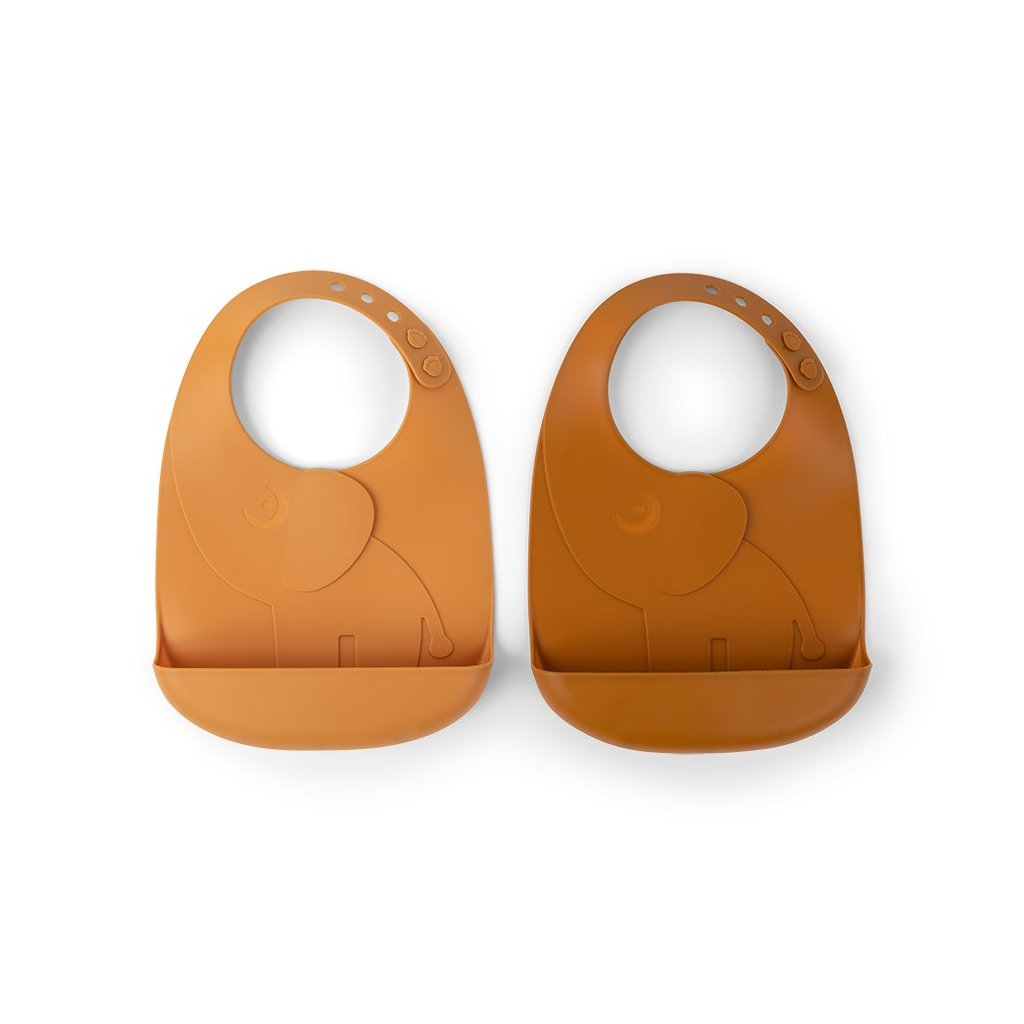 Elphee vykukuje z praktického silikonového bryndáčku - připravený zachytit každý drobeček. Oba bryndáčky jsou voděodolné, snadno se otírají nebo umývají v myčce. Kapsa zachytí padající jídlo a ušetří vám spoustu času při úklidu. Bryndáčky jsou vyrobeny z potravinářského silikonu. Jsou měkké a pohodlné na nošení pro nejmenší. Roztomilé tlapky Elpheeho jsou skvělé pro snadné nasazení a zapnutí bryndáčku. Podbradníky Peekaboo Elphee ve dvou odstínech se dokonale hodí k nádobí z kolekce Peekaboo.