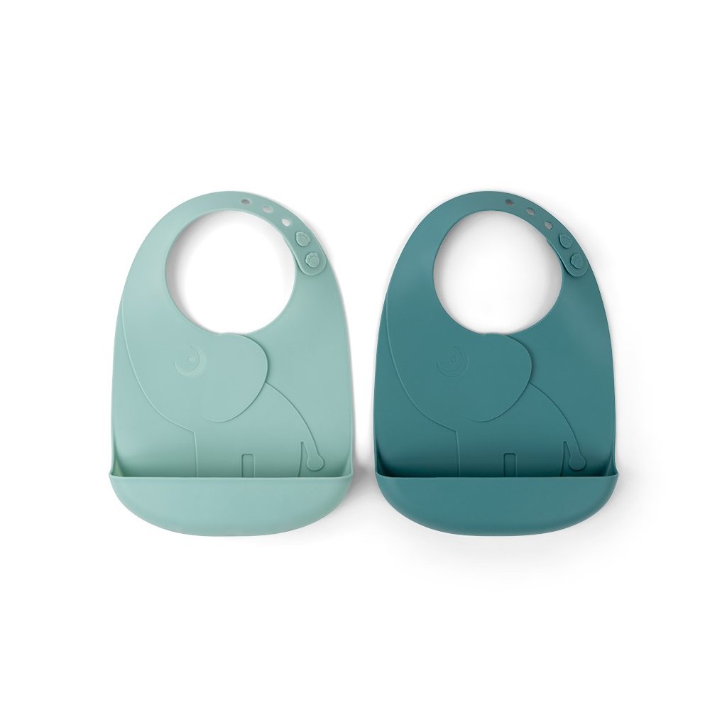 Elphee vykukuje z praktického silikonového bryndáčku - připravený zachytit každý drobeček. Oba bryndáčky jsou voděodolné, snadno se otírají nebo umývají v myčce. Kapsa zachytí padající jídlo a ušetří vám spoustu času při úklidu. Bryndáčky jsou vyrobeny z potravinářského silikonu. Jsou měkké a pohodlné na nošení pro nejmenší. Roztomilé tlapky Elpheeho jsou skvělé pro snadné nasazení a zapnutí bryndáčku. Podbradníky Peekaboo Elphee ve dvou odstínech se dokonale hodí k nádobí z kolekce Peekaboo.