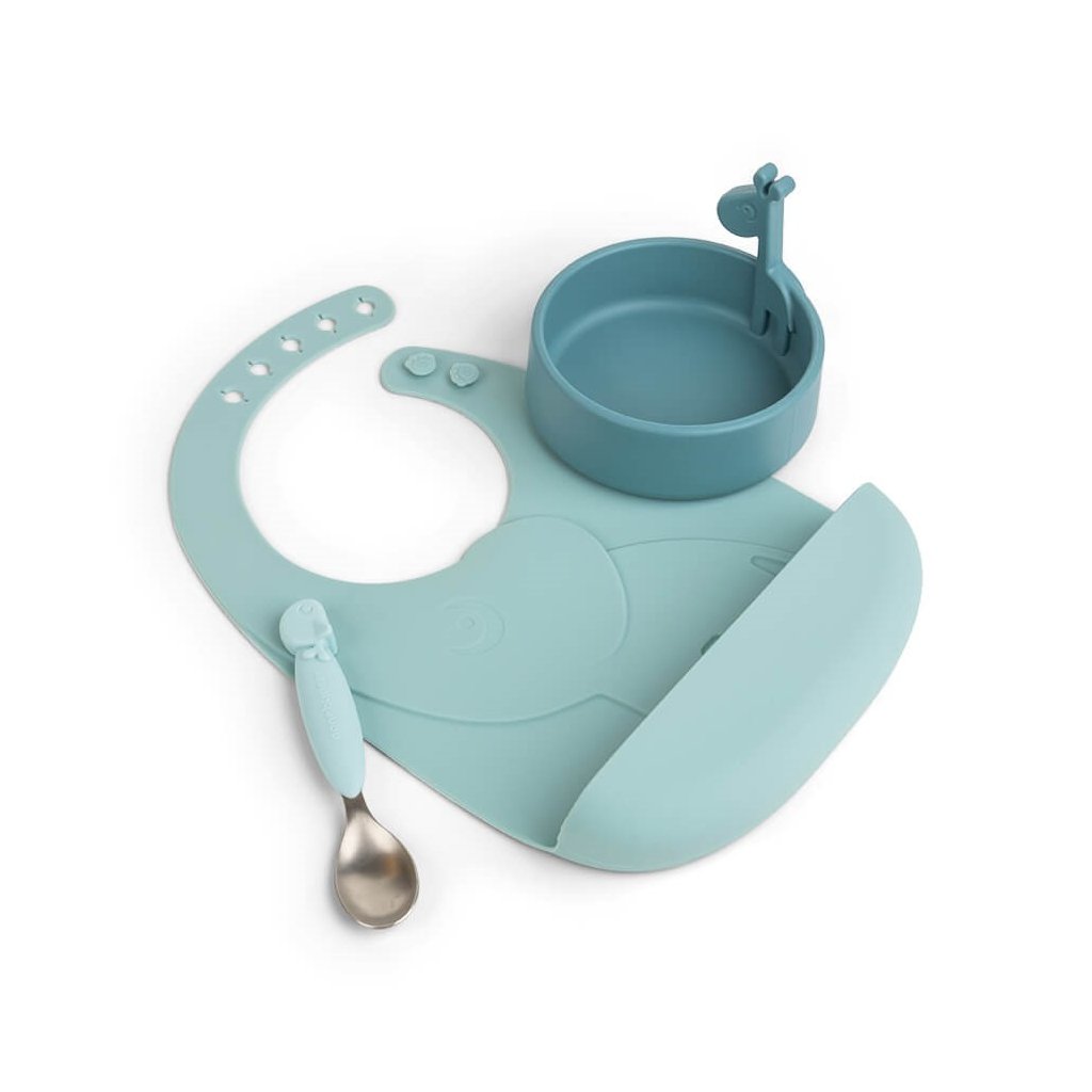 Startovací jídelní set „Peekaboo“ je navržen tak, aby vyvolal zvědavost malých jedlíků. Elphee a Raffi vykukují z nádobí - takže jídlo je navíc zábavnou denní dobou. Dokonalá velikost pro první pokrmy a pro učení vlastních jídelních návyků. Roztomilá miska, lžíce a praktický podbradník jsou vyrobeny z potravinářského silikonu, díky čemuž je tato sada nerozbitná a vhodná pro použití v mikrovlnné troubě, stejně jako protiskluzová a snadno uchopitelná. Nejmenší si užijí zábavu s jeleními přáteli při jídle - přičemž Elphee zachytí do kapsy v bryndáčku jakékoli jídlo. Roztomilá dárková sada je v jemných tónech.
