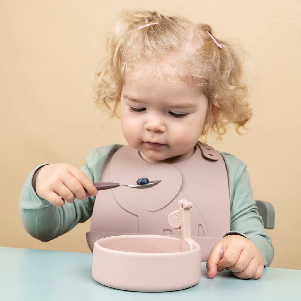 Startovací jídelní set „Peekaboo“ je navržen tak, aby vyvolal zvědavost malých jedlíků. Elphee a Raffi vykukují z nádobí - takže jídlo je navíc zábavnou denní dobou. Dokonalá velikost pro první pokrmy a pro učení vlastních jídelních návyků. Roztomilá miska, lžíce a praktický podbradník jsou vyrobeny z potravinářského silikonu, díky čemuž je tato sada nerozbitná a vhodná pro použití v mikrovlnné troubě, stejně jako protiskluzová a snadno uchopitelná. Nejmenší si užijí zábavu s jeleními přáteli při jídle - přičemž Elphee zachytí do kapsy v bryndáčku jakékoli jídlo. Roztomilá dárková sada je v jemných tónech.