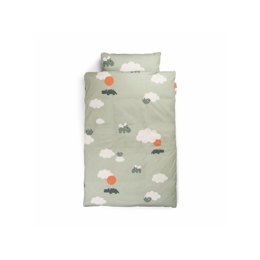 Měkké ložní prádlo z organické bavlny Vám poskytne pohodlnou cestu na místo, kde se tvoří sny. Roztomilý potisk Happy Clouds dodá zasněnou náladu každému pokojíčku. Povlečení má praktický bezpečnostní zip YKK v povlaku na polštář i v povlaku na přikrývku. Je zabaleno v malé bavlněné taštičce vhodné k ložnímu povlečení, kterou lze použít na hračky, převlečení, boty nebo jiné praktické účely. Ložní prádlo má celkově jemný tón a roztomilý potisk s Birdee, Ozzo, Crocem a snovými prvky, jako jsou mraky a balónky.