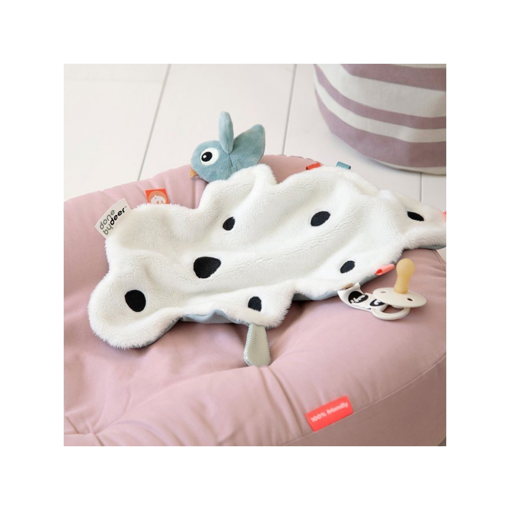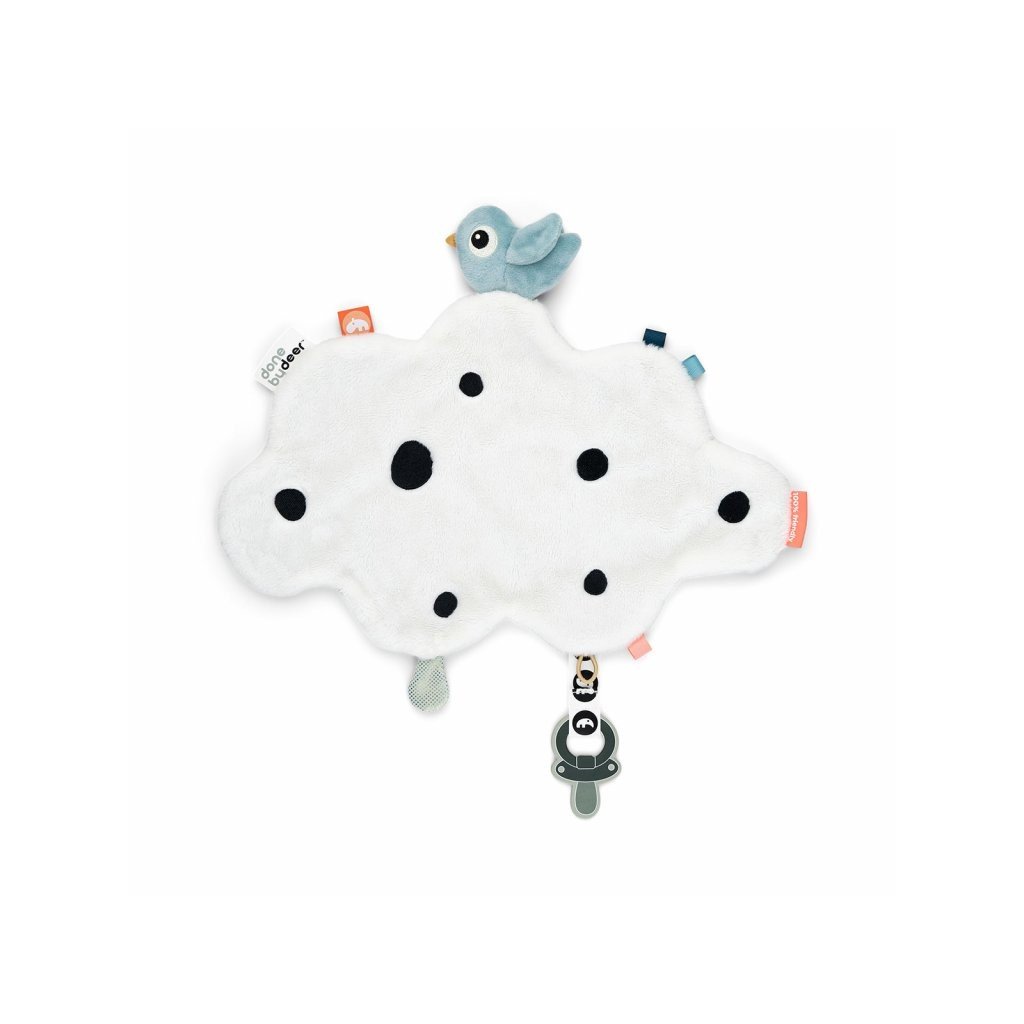 Nechte své miminko přitulit se s útulnou komfortní dečkou Happy Clouds. Přítulka je super měkká a pohodlná, aby ji Vaše děťátko drželo, když se vydá do říše snů, nebo jako bezpečného společníka na cestách na nová místa. Dětská pohodlná dečka je nabitá zábavnými štítky a vystupujícími texturami připravenými k prozkoumání. Praktický klip na suchý zip udrží dudlíky poblíž.