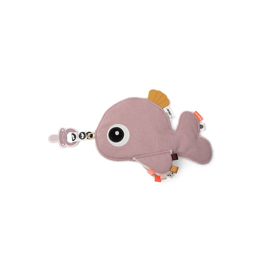 Miminka se mohou pomazlit s měkkou a ospalou velrybou. Prstíky mohou snadno uchopit měkkou ploutev a zabavit se zkoumáním barevných štítků, různých textur a tvarů. Měkké silikonové hryzátko stimuluje a uklidňuje svědění dásní. Roztomilá velryba udrží dudlíky v blízkosti, když děťátko usne. Praktické poutko na suchý zip a elastické poutko umožňuje připevnění dudlíků. Uklidňující přítel z moře je dokonalým společníkem pro vaše dítě.