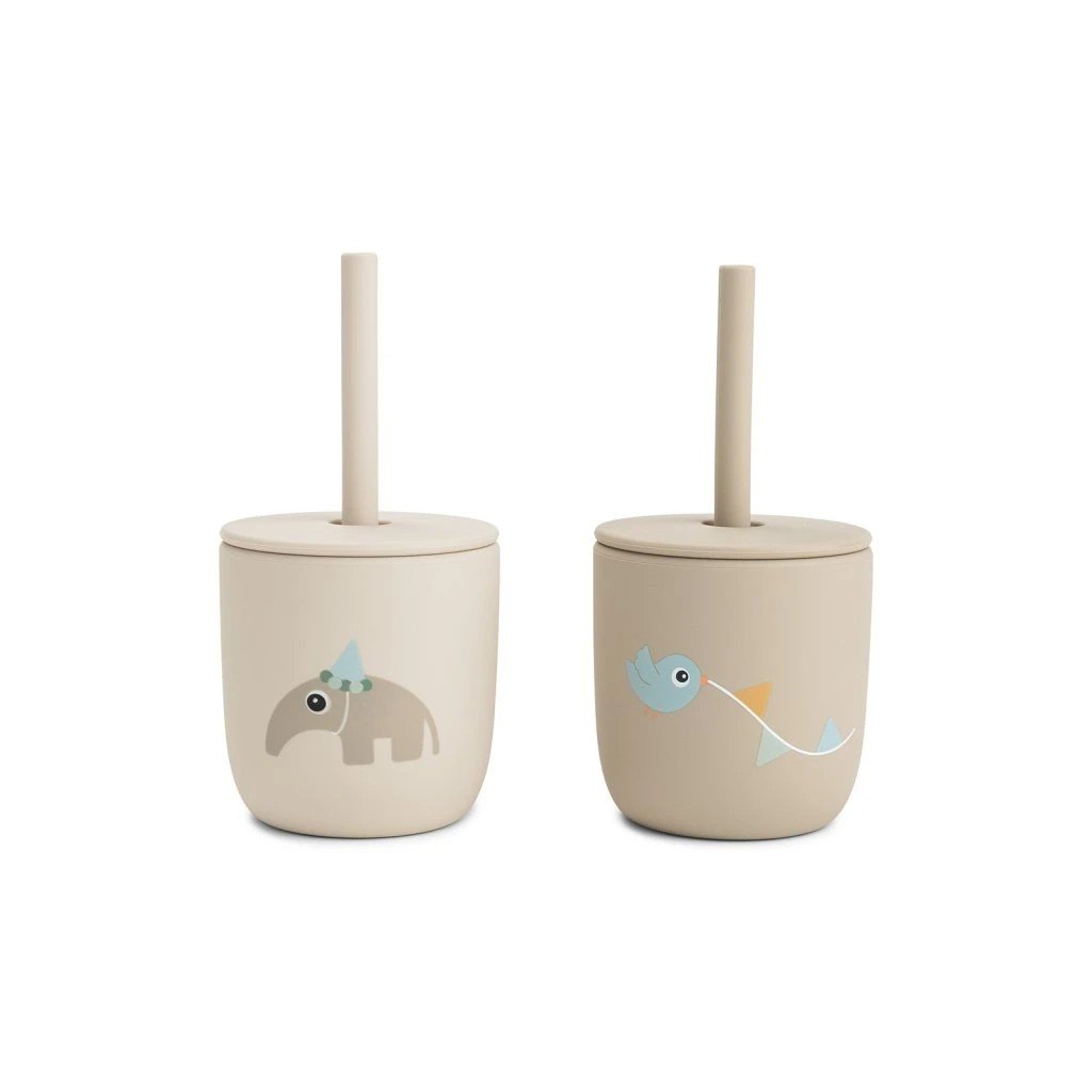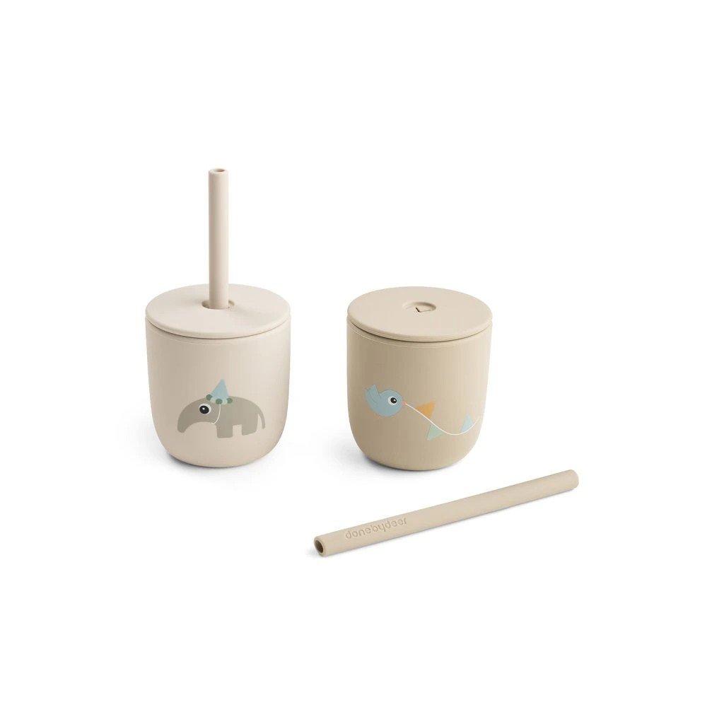 DONE BY DEER Set 2 hrnečků s brčkem Celebration pískové