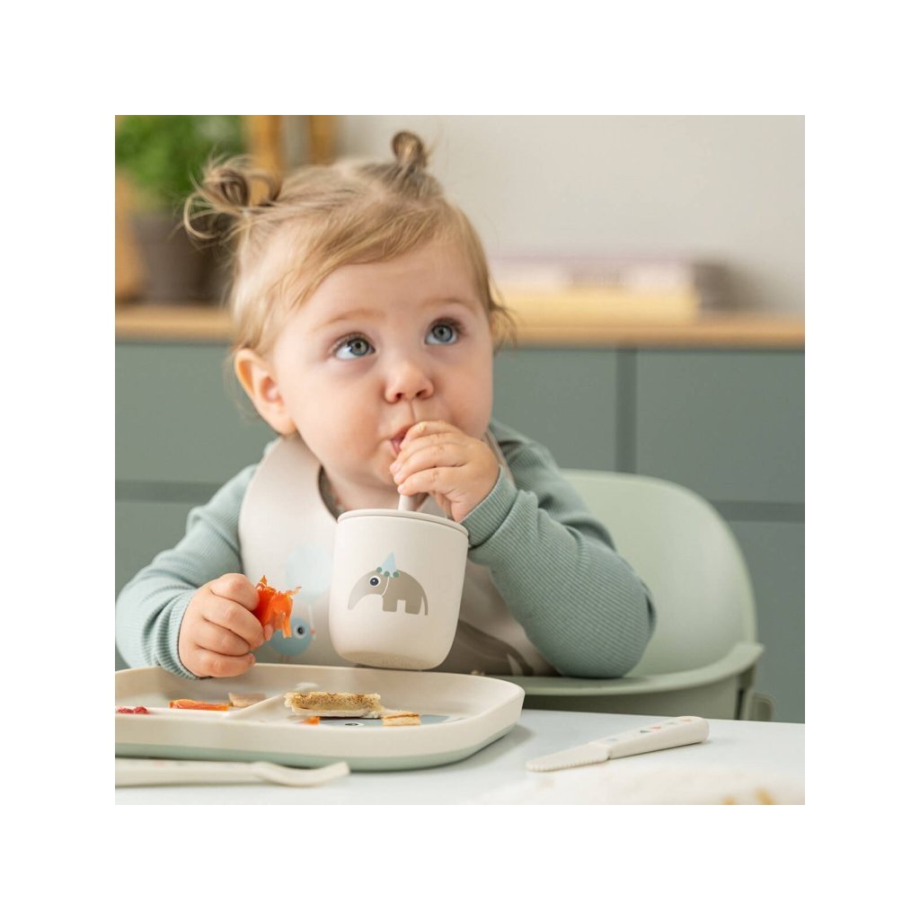 Silikonové kelímky s brčkem mají ideální velikost pro malé ručičky. Praktické víčko pomůže udržet nápoje uvnitř a brčko na místě, což malým dětem usnadní používání. Roztomilé tréninkové kelímky jsou vyrobeny z potravinářského silikonu, díky čemuž jsou nerozbitné. Roztomilá brčka perfektně padnou do všech malých dětských hrnečků bez naklánění.