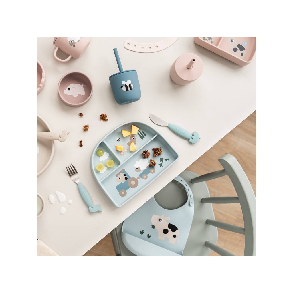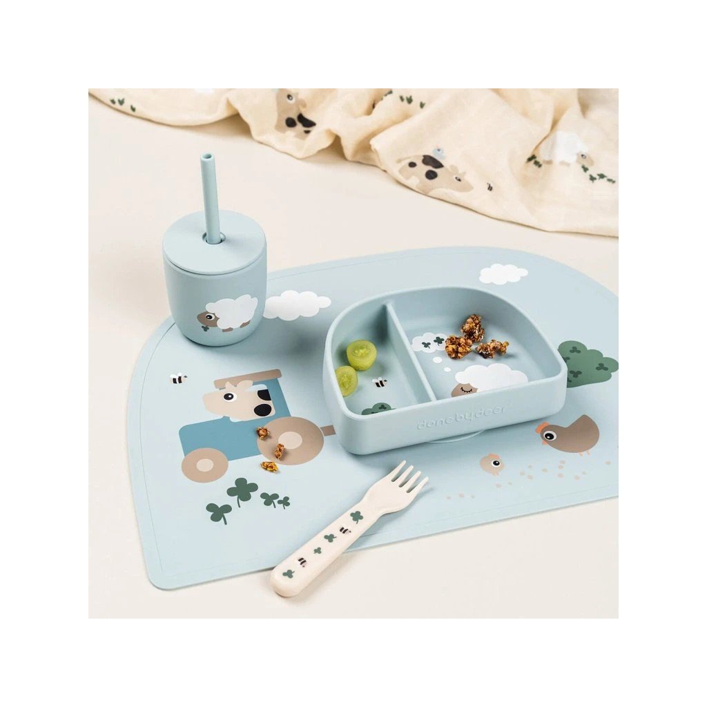 DONE BY DEER Set 2 hrnečků s brčkem Tiny farm modré