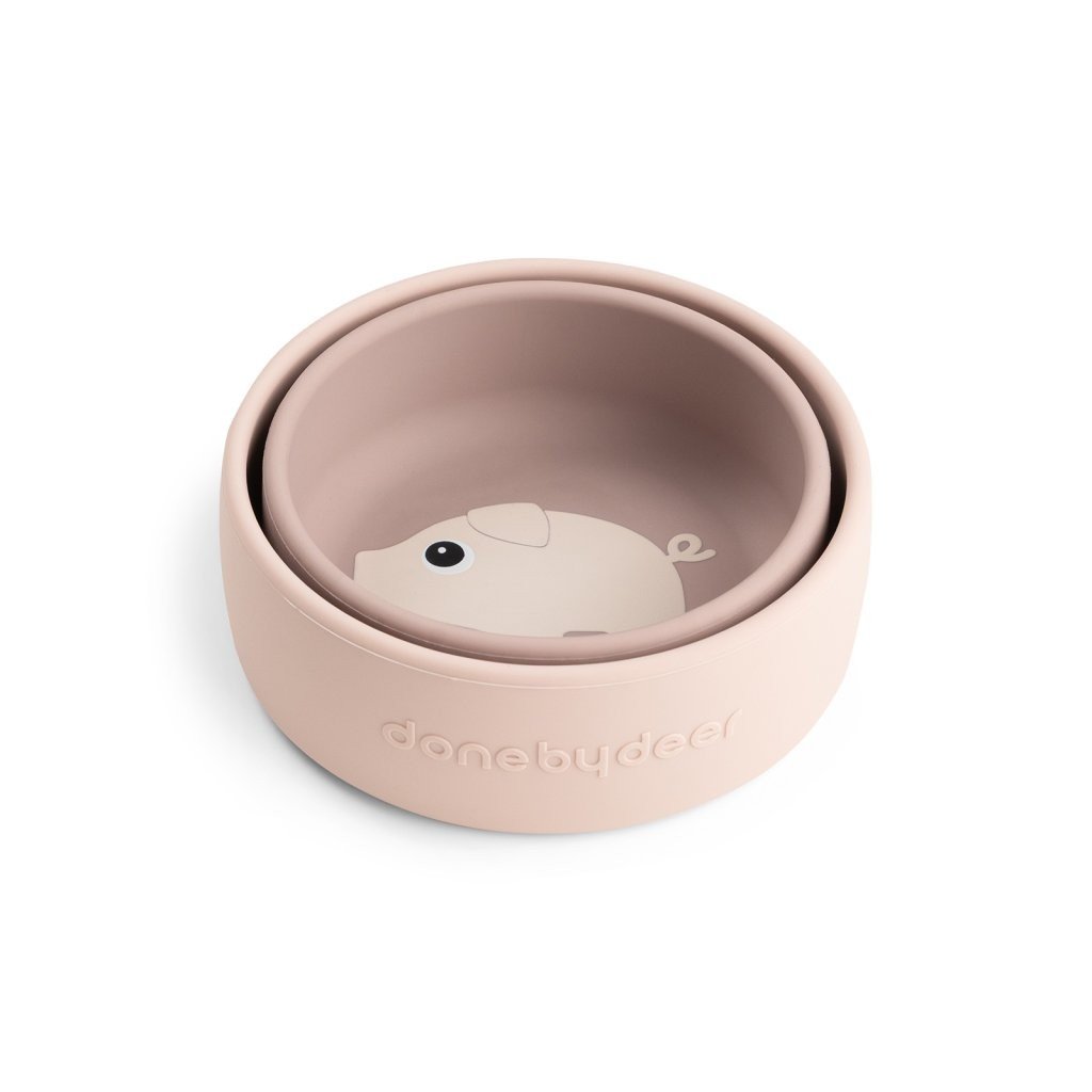 DONE BY DEER Set 2 ks silikonových misek Pigee růžové