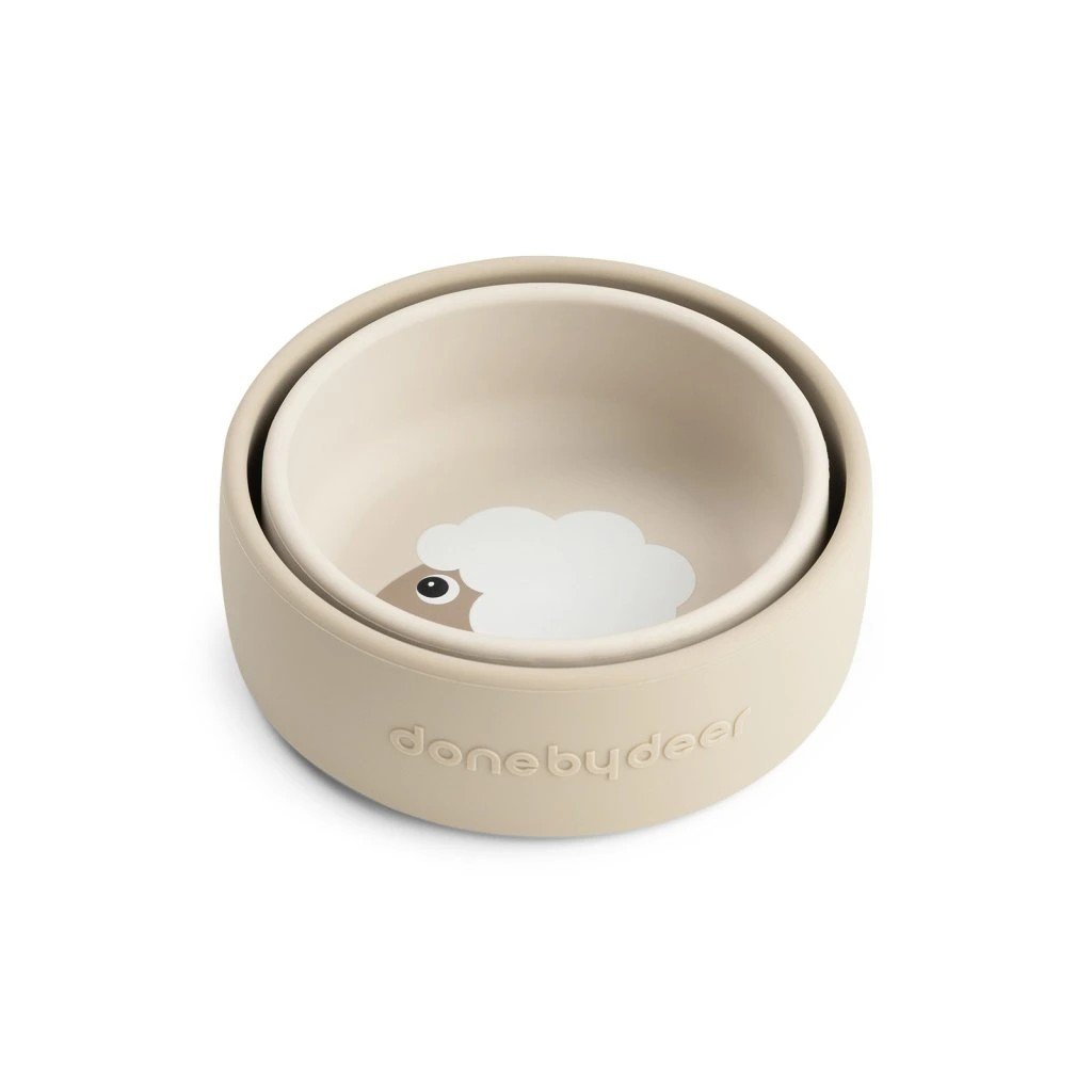 DONE BY DEER Set 2 ks silikonových misek Sheepy pískové