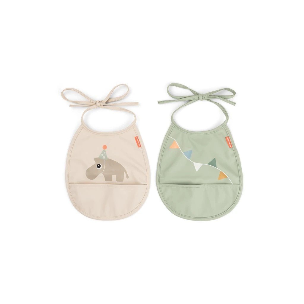 Set 2 ks bryndáčků je roztomilým doplňkem nového jídelníčku vašeho děťátka. Tyto okouzlující bryndáčky jsou v jemných odstínech a mají hravé motivy jeleních kamarádů. Díky voděodolnému povrchu poskytují vynikající ochranu oblečení vašeho dítěte a po jídle se snadno otírají. Vestavěná kapsa je ideální pro zachycení jakéhokoli upuštěného jídla a pomáhá minimalizovat nepořádky při jídle. Pohodlné zavazování na šňůrku zajišťuje snadné a nastavitelné oblékání pro vaše nejmenší. Zpříjemněte si jídlo s těmito rozkošnými a praktickými bryndáčky.