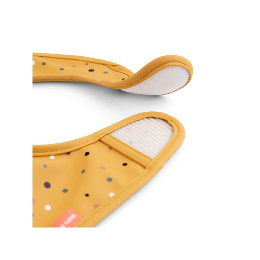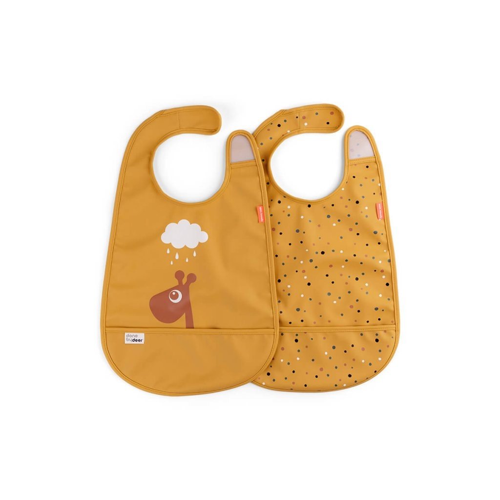 S touto praktickou sadou dvou voděodolných bryndáků, které lze snadno otřít, a s chytrou kapsou na zachycení padajícího jídla, je Váš deer kamarád připraven udělat při jídle méně nepořádku. Tento set Vám ušetří spoustu času při úklidu. Měkké bryndáčky mají zapínání na suchý zip, díky kterému se velmi snadno oblékají a svlékají. Roztomilý set v jemném pudrovém odstínu, jeden zdobí Raffi a druhý je pokrytý šťastnými tečkami v jemných barvách. Tento výrobek má certifikát OEKO-TEX®. potravinářské kvality.