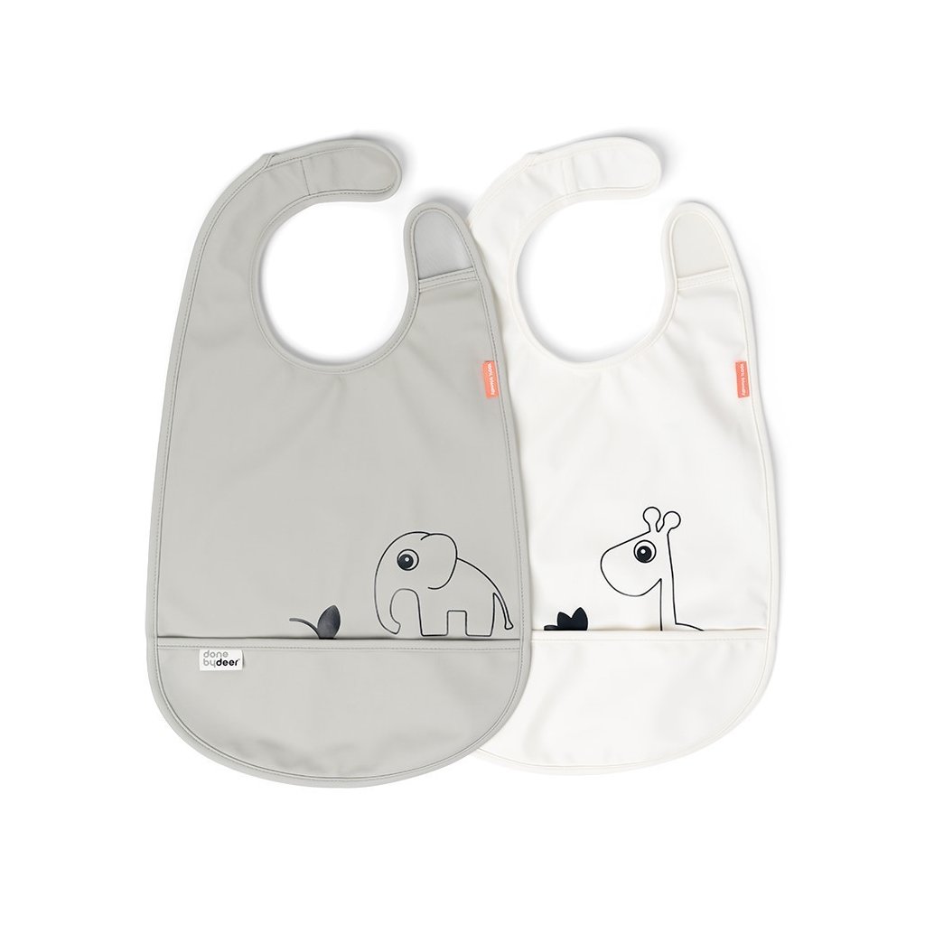 Set 2 kusů bryndáčků Deer Friends s kapsou z měkkého materiálu, který se snadno čistí, ideální na cesty.