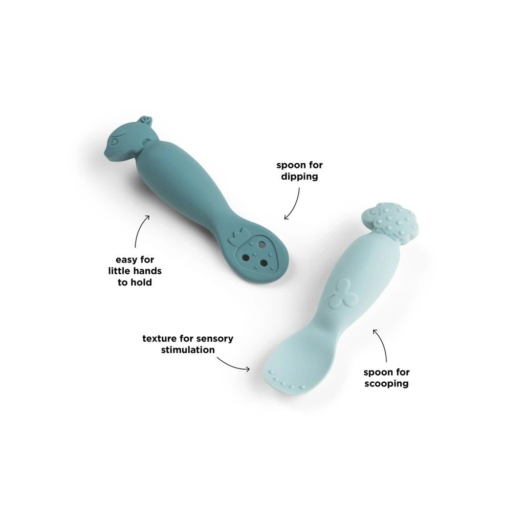 Když Vaše dítě začíná jíst samo, je příjemné mít k ruce společníka. Lžičky jsou vyrobeny ze silikonu, který poskytuje příjemný úchop pro malé ručičky. Velikost dětské lžičky je ideální pro samostatné batole, které se učí jíst samo a pro nadcházející roky. Praktické 2-balení lžiček ve dvou odstínech. Ideální pro konzumaci všech oblíbených jídel a zkoušení nových jídel.