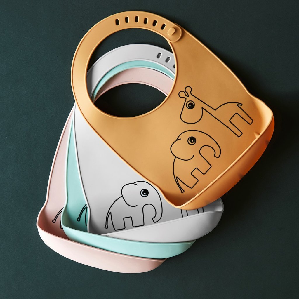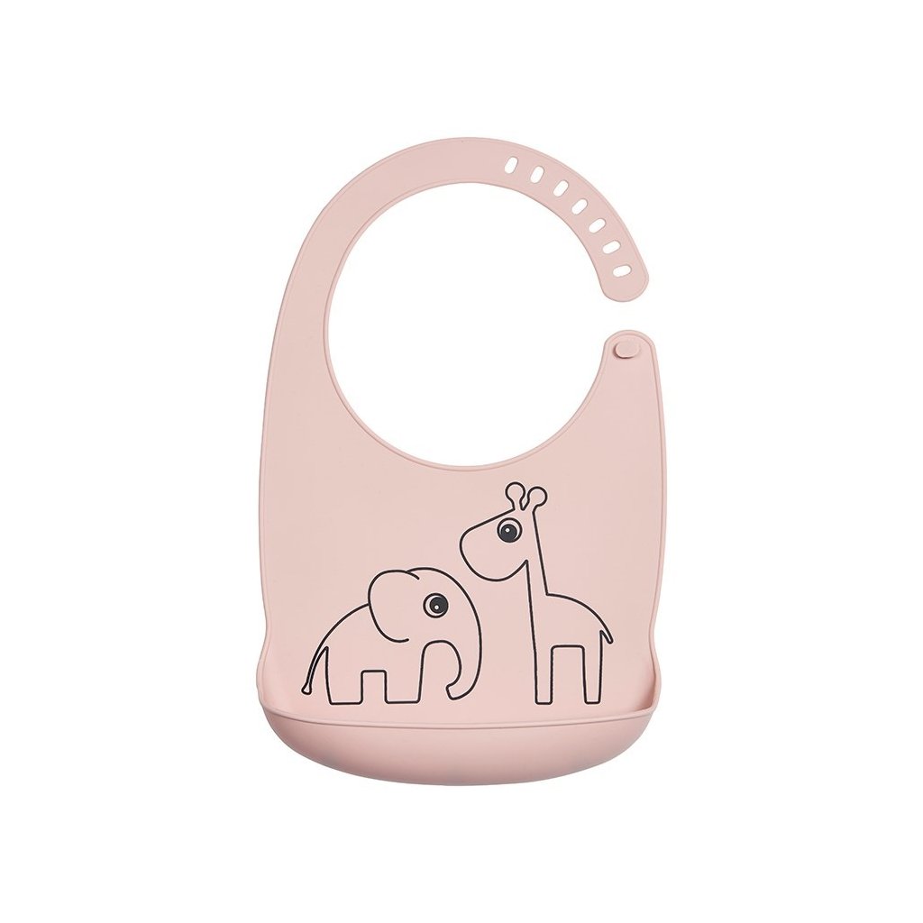 Praktický voděodolný silikonový bryndáček s jeleními přáteli Raffi a Elphee. Měkký a pohodlný i pro ty nejmenší děti s nastavitelným popruhem kolem krčku. Možno mýt v myčce.