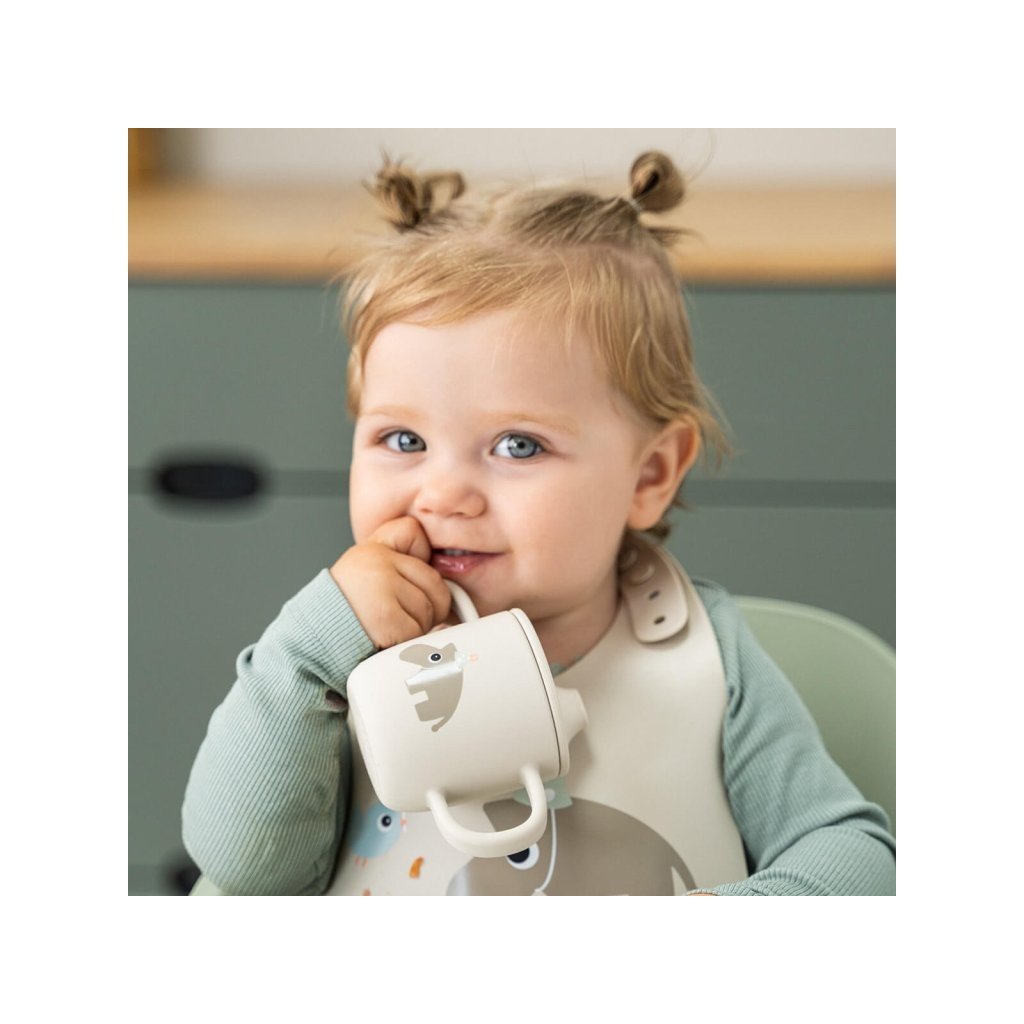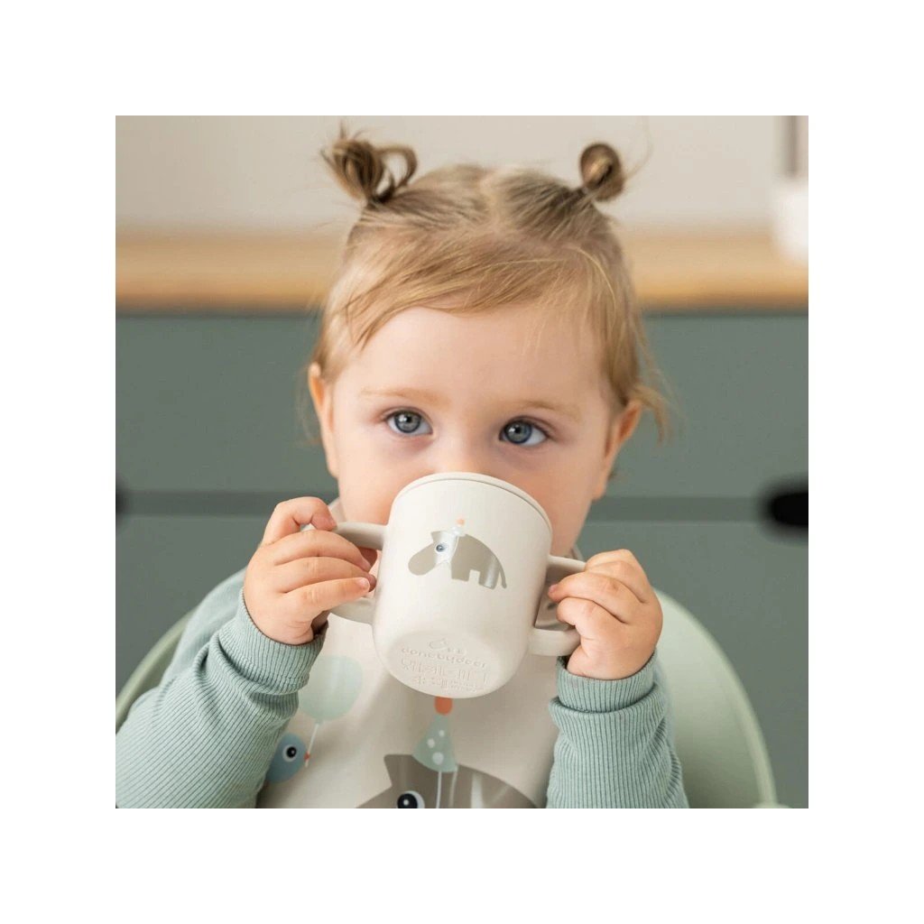 Hrneček s pítkem je perfektní hrnek 2 v 1 pro procvičování prvních doušků. Pítko zabraňuje rozlití tekutiny. Když je Vaše děťátko připraveno, pítko se může sundat a šálek se dvěma rukojeťmi zajistí pevné uchopení. Roztomilý hrneček je vyroben z potravinářského silikonu, díky kterému je nerozbitný, nepropustný a snadno uchopitelný. Skvělý doplněk na doma, na cesty, auta nebo na zábavný výlet na hřiště.