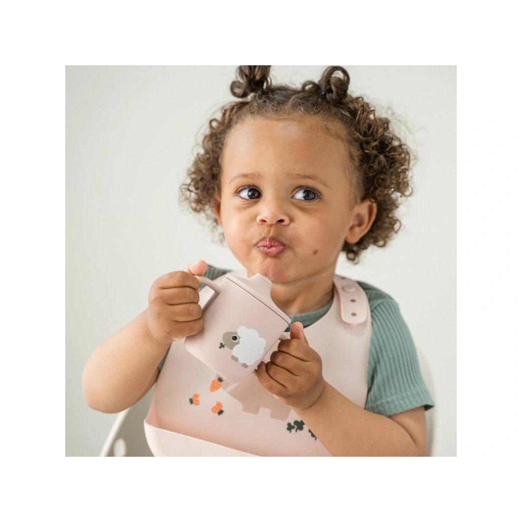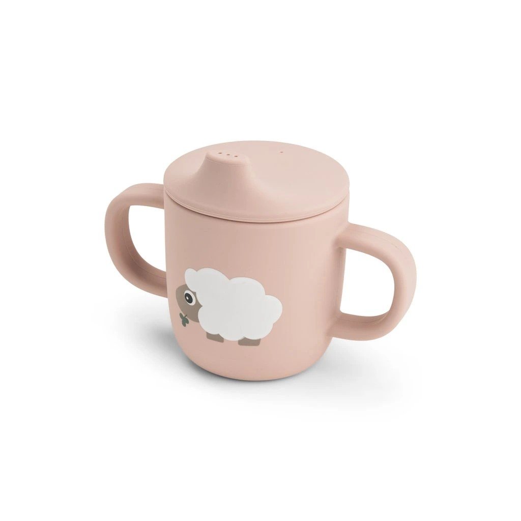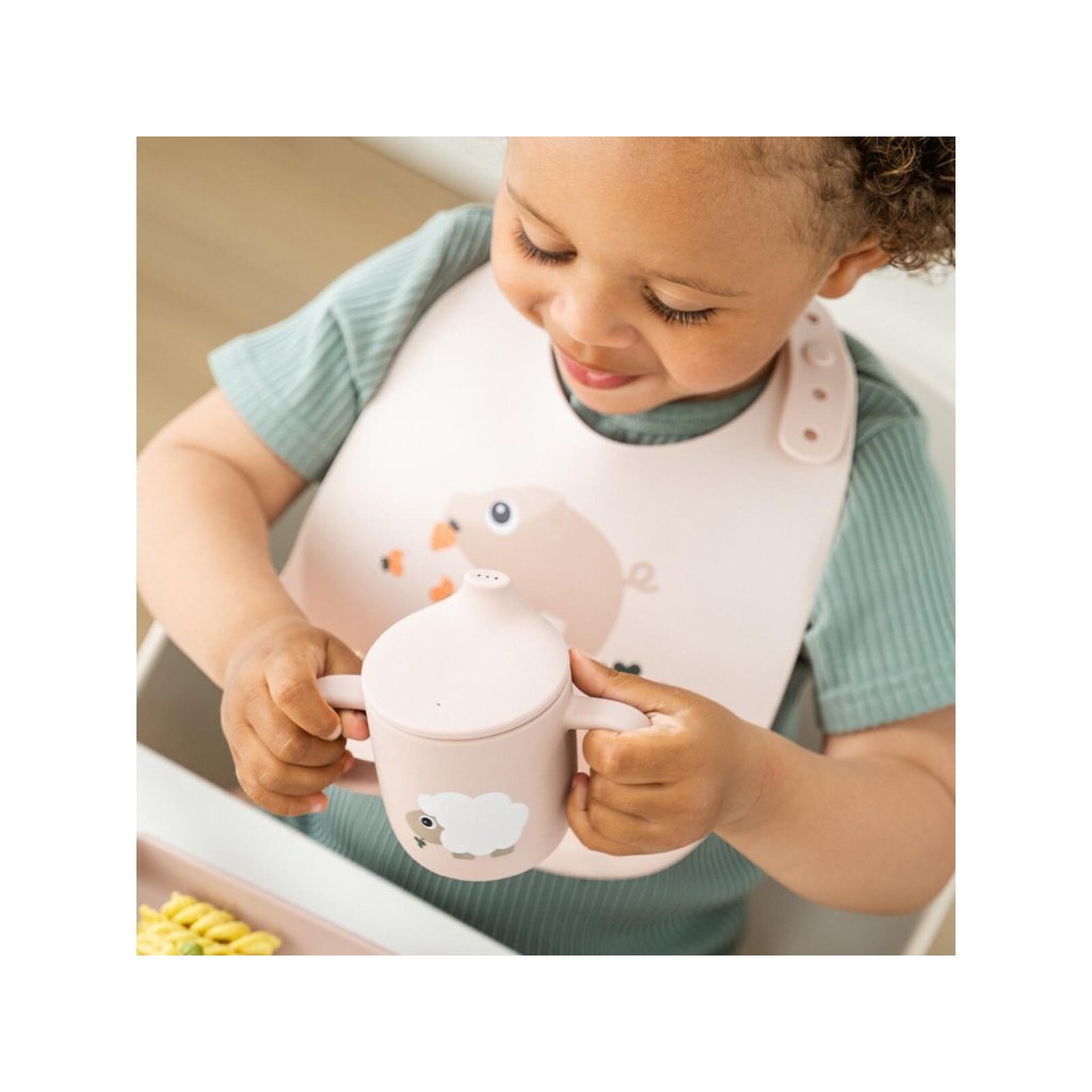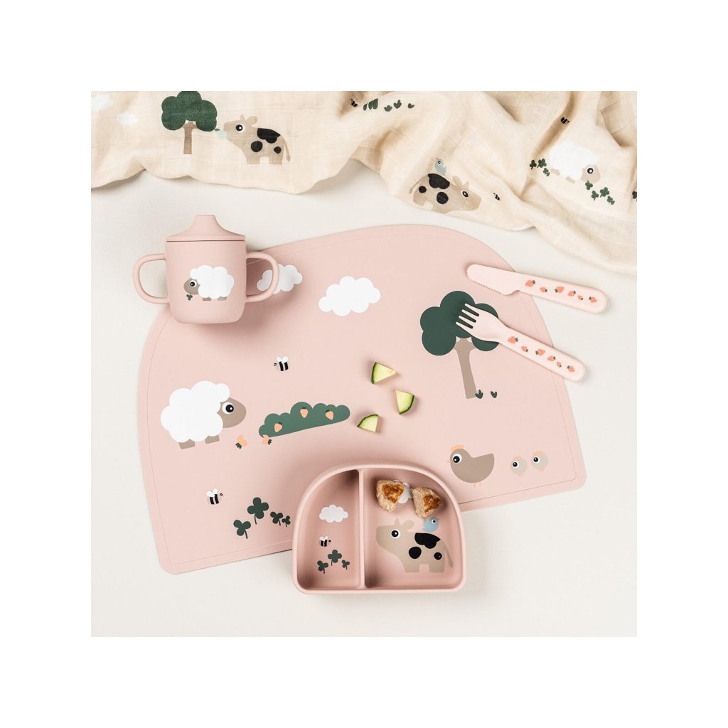DONE BY DEER Silikonový hrneček s pítkem Tiny farm růžový