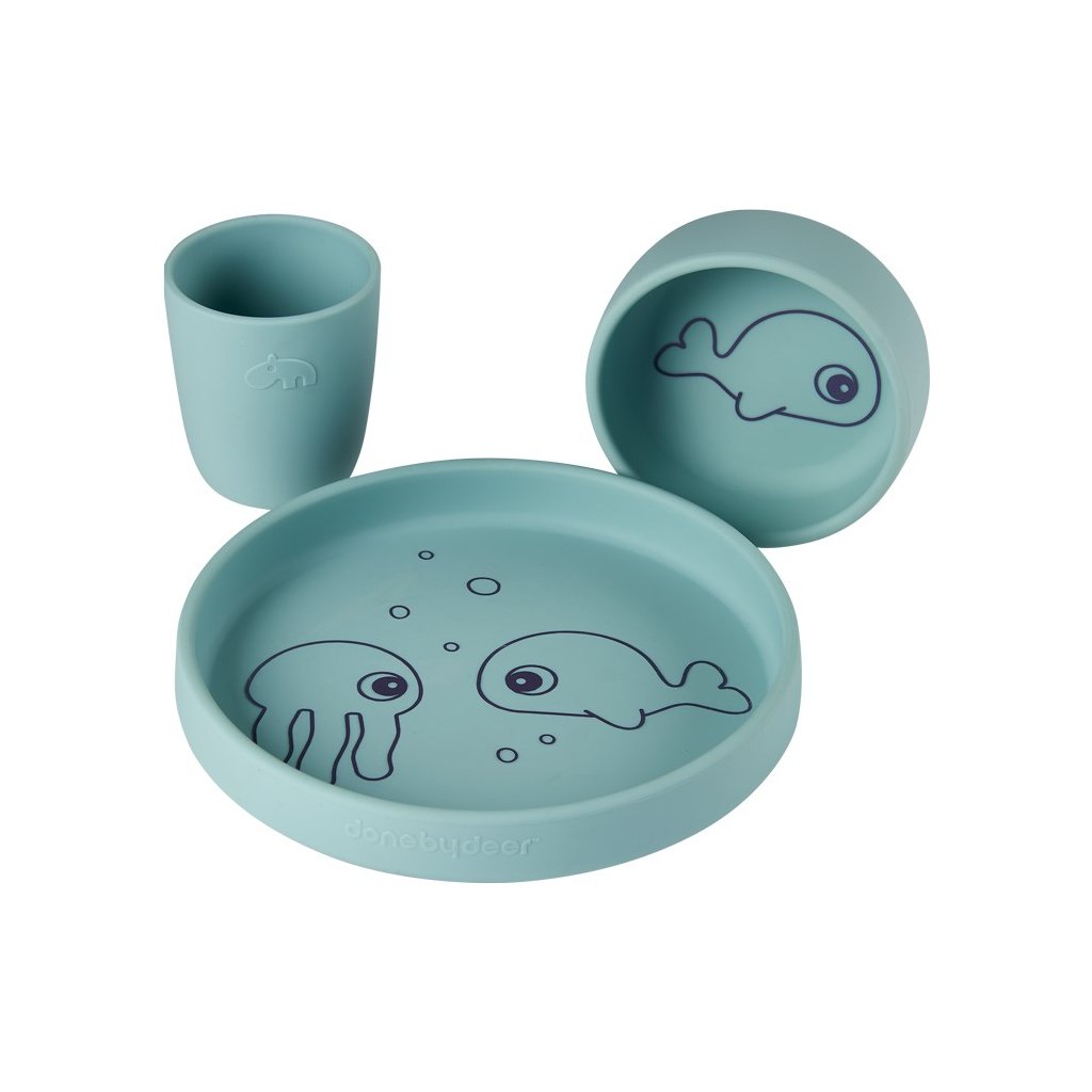 DONE BY DEER Silikonový jídelní set Sea Friends modrý