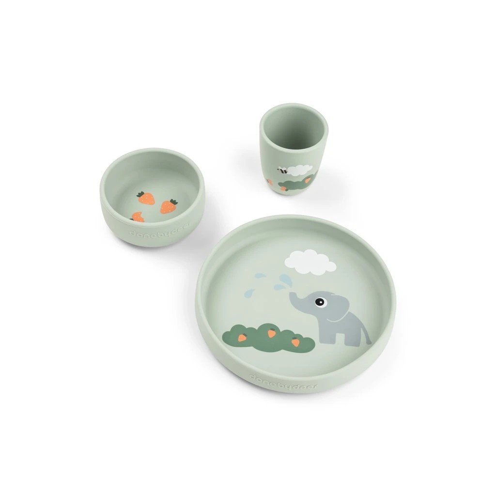 DONE BY DEER Silikonový jídelní set Stick & Stay Elphee zelený
