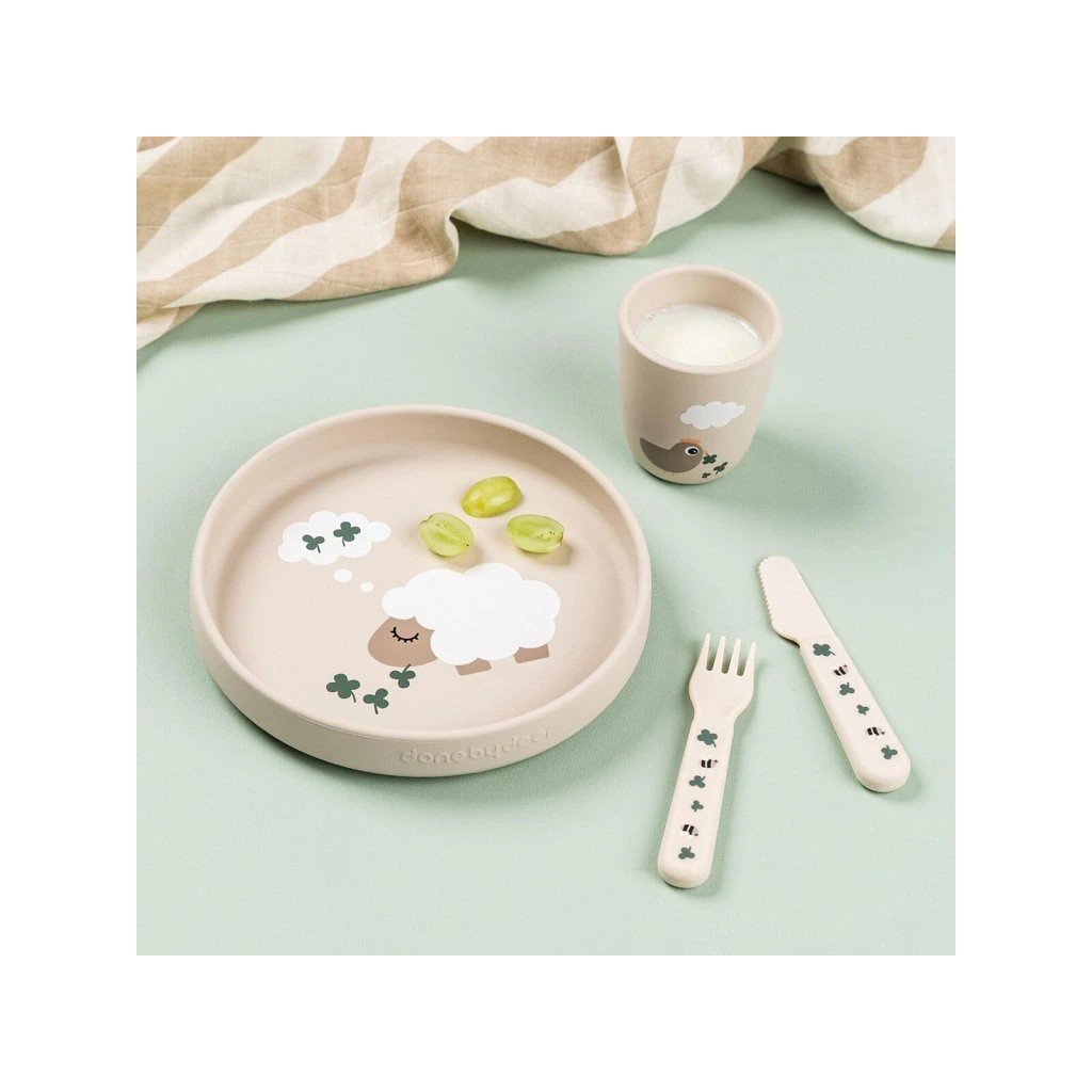 DONE BY DEER Silikonový mini hrneček Tiny farm pískový