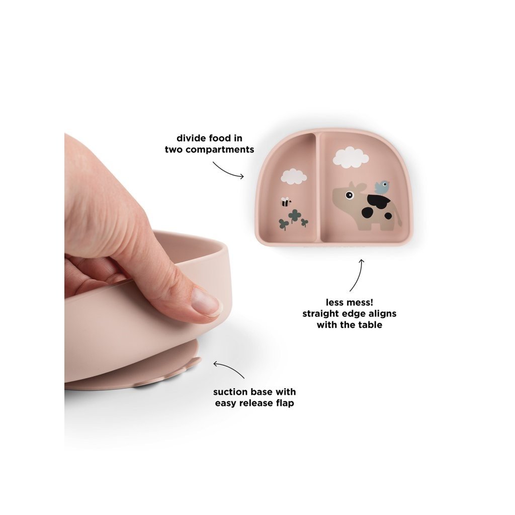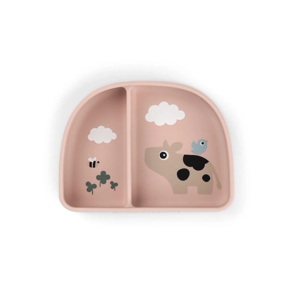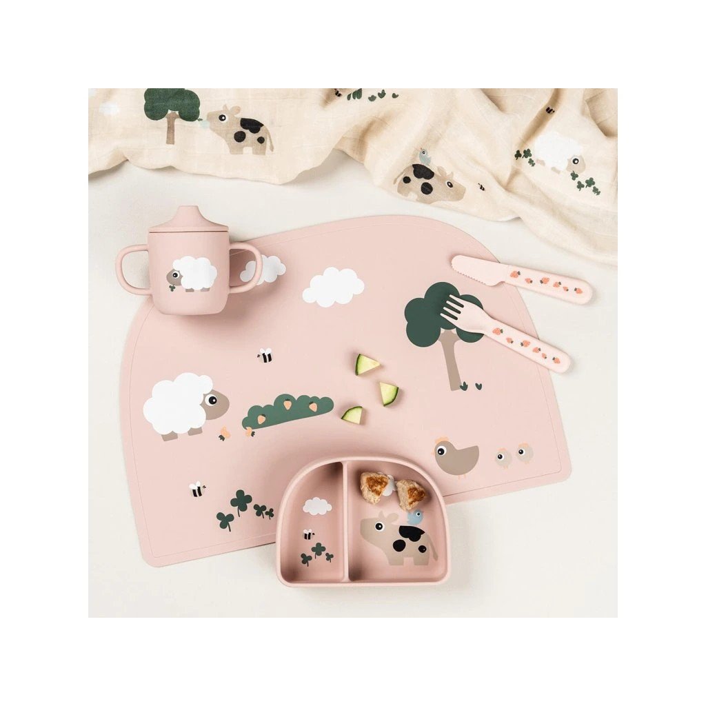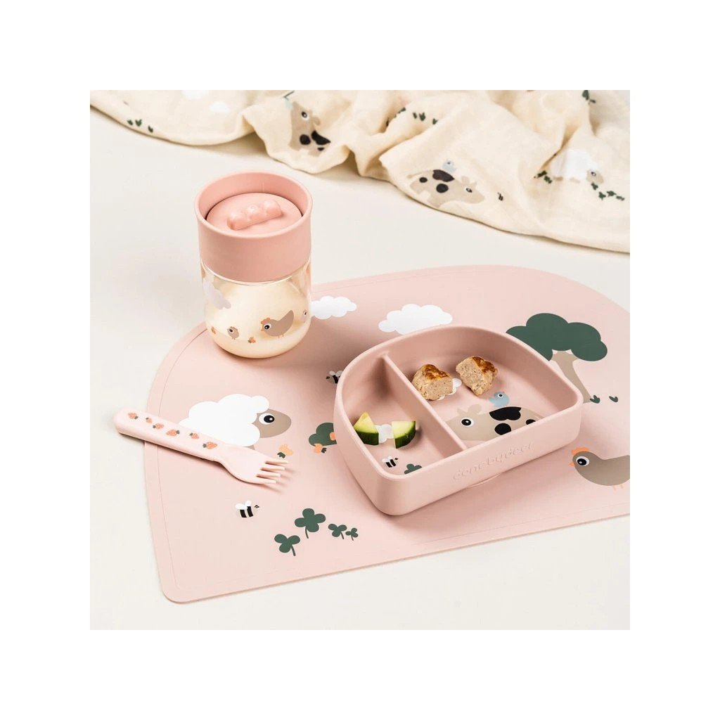 DONE BY DEER Stick and stay silikonová miska Tiny farm růžová