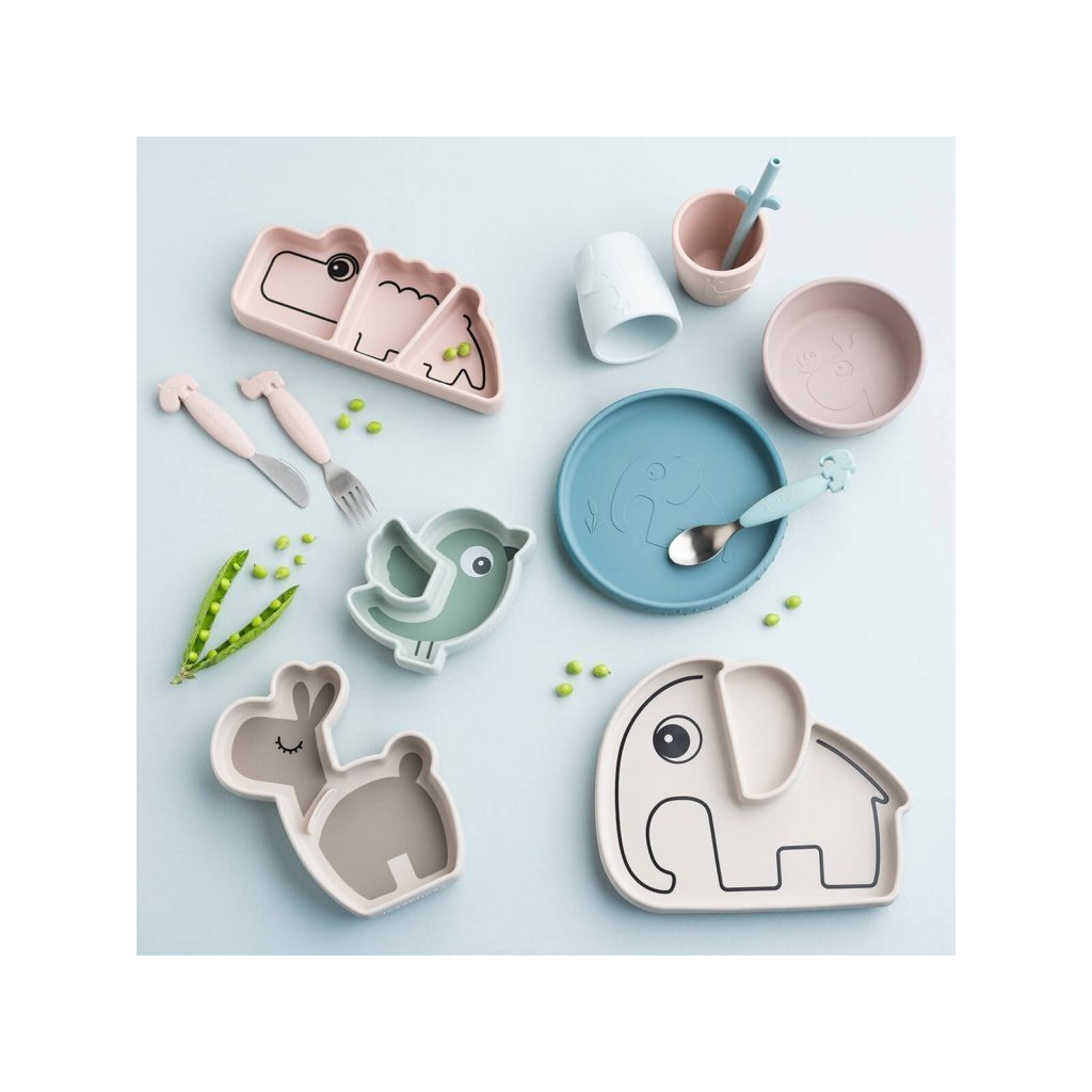 Přísavná základna zabraňuje malým dětem tlačit, překlápět nebo házet talíř. Dvě přihrádky pro oddělení potravin. Dvě snadno odnímatelné chlopně jsou skryté pod ocasem a uchem Lalee. Zaoblené vnitřní okraje usnadňují malým dětem nabírání jídla. Tepelně odolný a vhodný pro použití v mikrovlnné troubě, troubě a mrazničce. 100% potravinářský silikon bez obsahu BPA je bezpečný pro děti. Roztomilý talíř na svačinu Elphee.