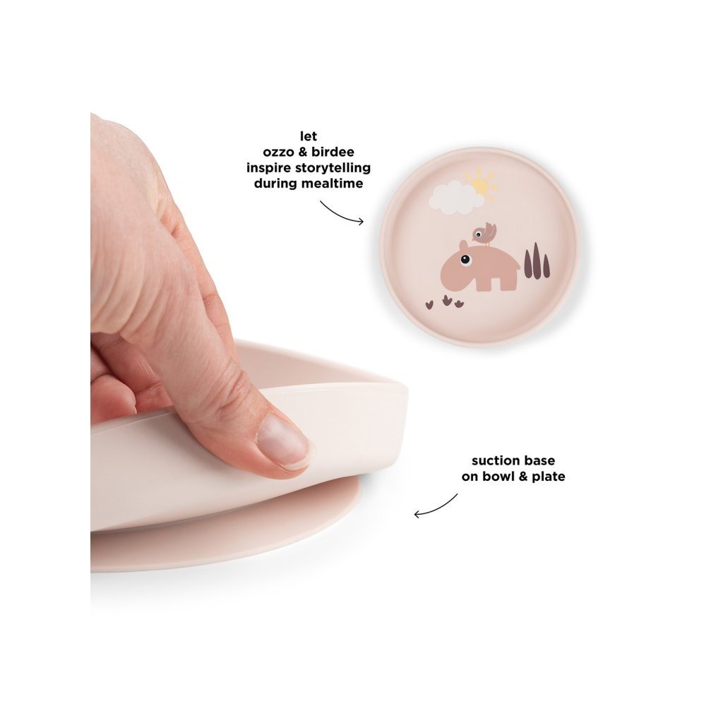 Jídelní talířek s hezkými obrázky. Přísavky na talíři udrží nádobí na místě během jídla. 100% potravinářský silikon bez obsahu BPA je bezpečný pro děti. Nádobí v jemných pudrových odstínech s vyraženými detaily roztomilých Deer friends. Perfektní dárek pro malé jedlíky.