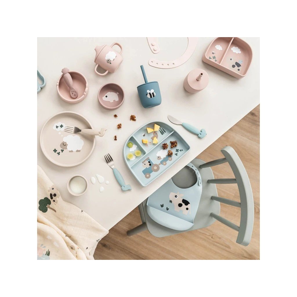 DONE BY DEER Stick and stay silikonový talíř Tiny farm pískový