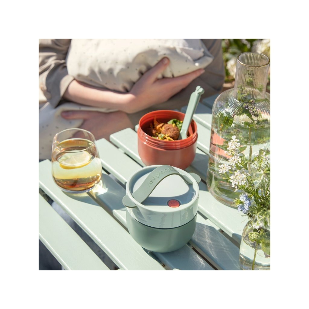 Tato praktická miska na oběd je ideální pro celou rodinu. Vezměte si ji na pěkný piknik, použijte ji pro sebe na procházku s kočárkem nebo naplňte oblíbeným jídlem Vaší rodiny. Miska na oběd má čistý design v moderních barvách. Šroubovací víko udrží dobroty uvnitř. Odnímatelná silikonová rukojeť usnadňuje přenášení misky i malým ručkám. Miska je vhodná do mikrovlnné trouby a myčky nádobí a perfektně se hodí k našim izolovaným taškám pro uchování teploty jídla.