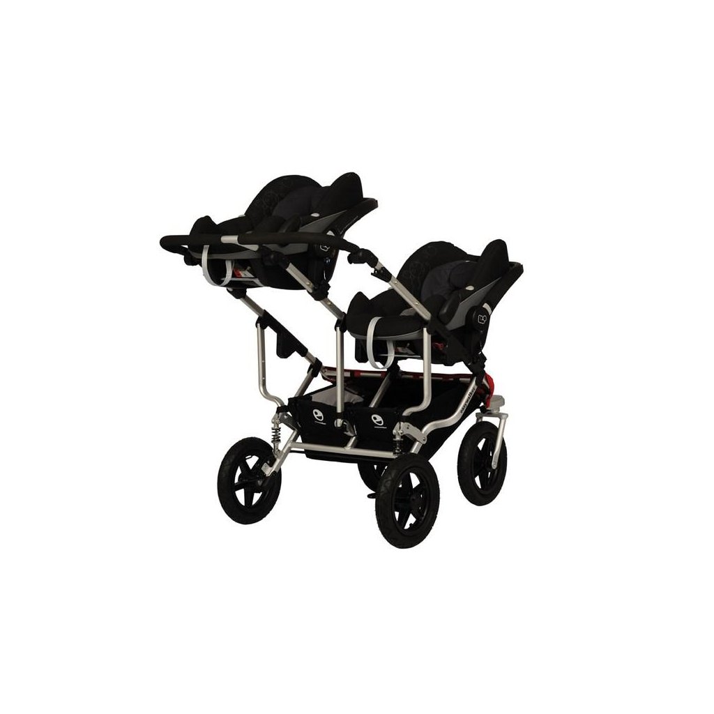 Na kočárek EasyWalker Duo můžete nainstalovat dvě autosedačky najednou, nebo nasadit jednu autosedačku vedle sportovní sedačky či hluboké korby. Pokud budete na kočárek Duo chtít nasadit dvě autosedačky vedle sebe, budete potřebovat dva adaptéry.